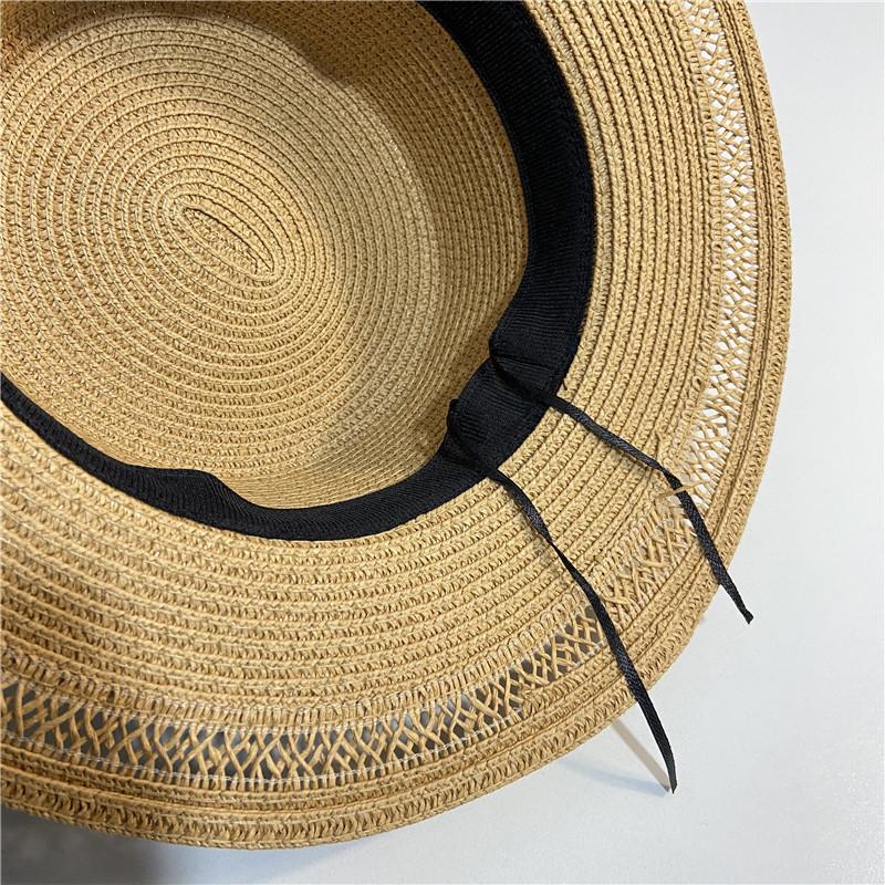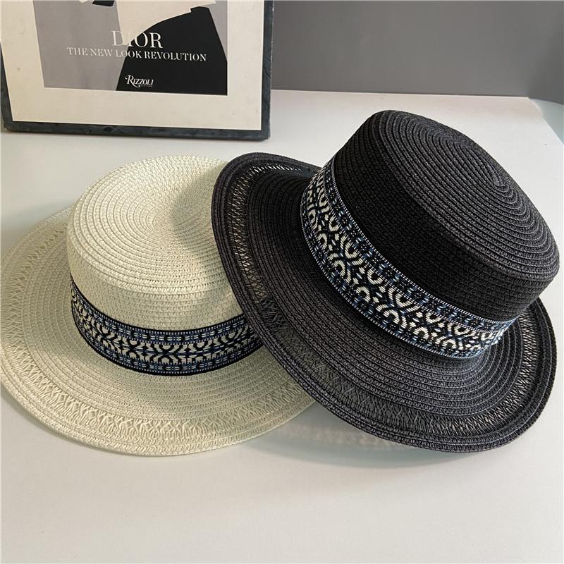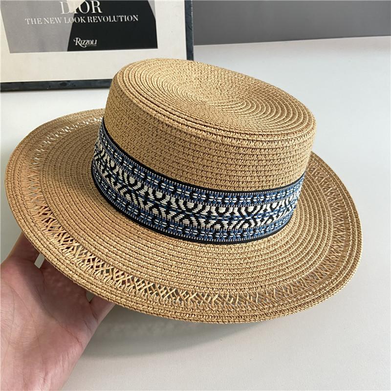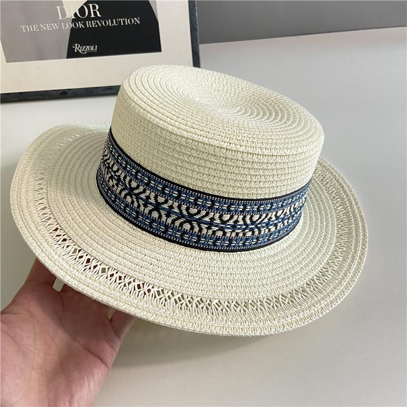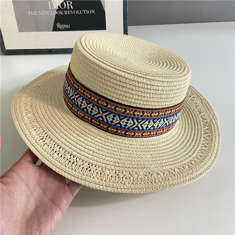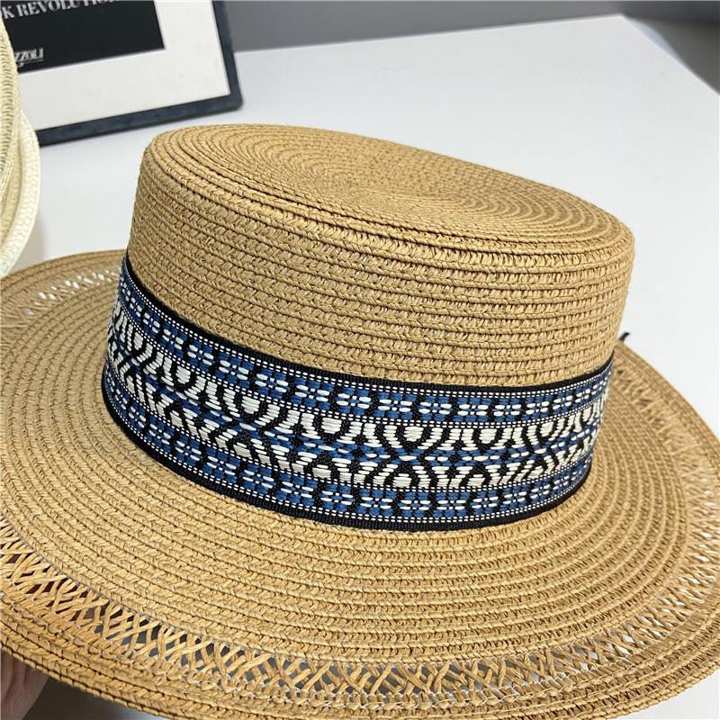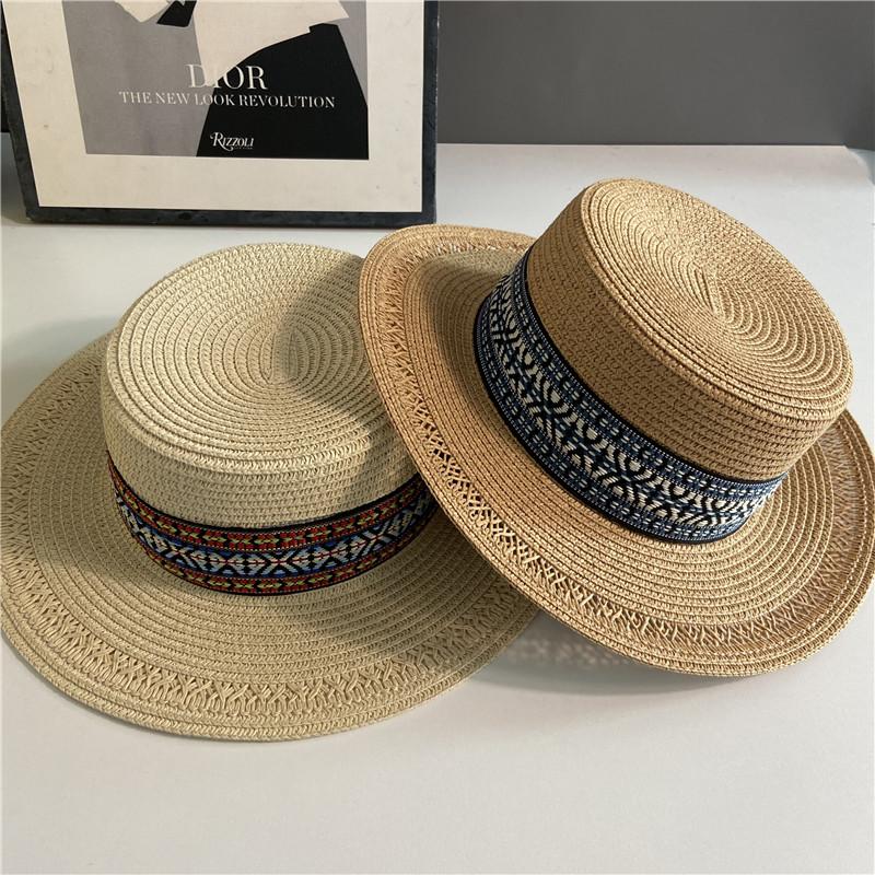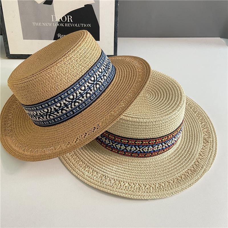 Estilo Étnico Bohemio Playa Mar Sombrero de Paja Parasol para Mujer Verano Viaje Protección Solar Combinable Sombrero de Copa Plano de Ala Ancha