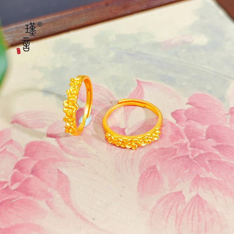 Jin Yan no se ha desvanecido en mucho tiempo.. Shajin, flor de durazno, anillo floreciente, Platycodon grandiflorum, anillo para el dedo de la comida, abertura, anillo ajustable, pulsera para mujer