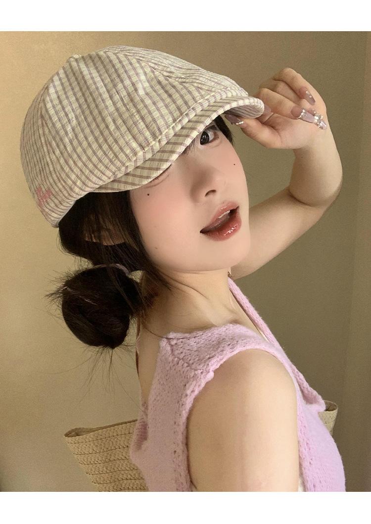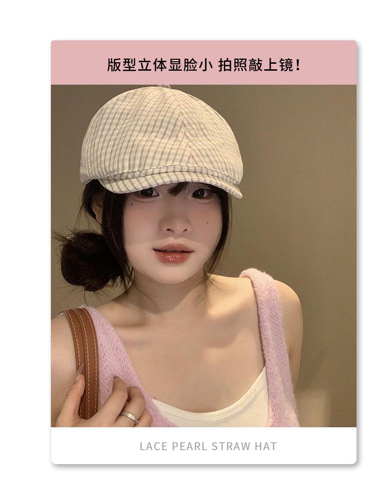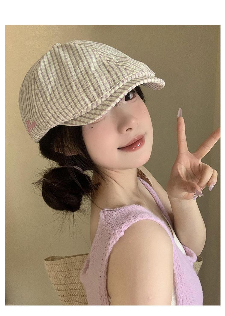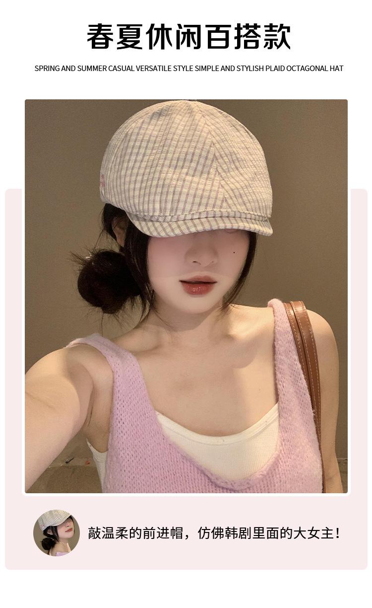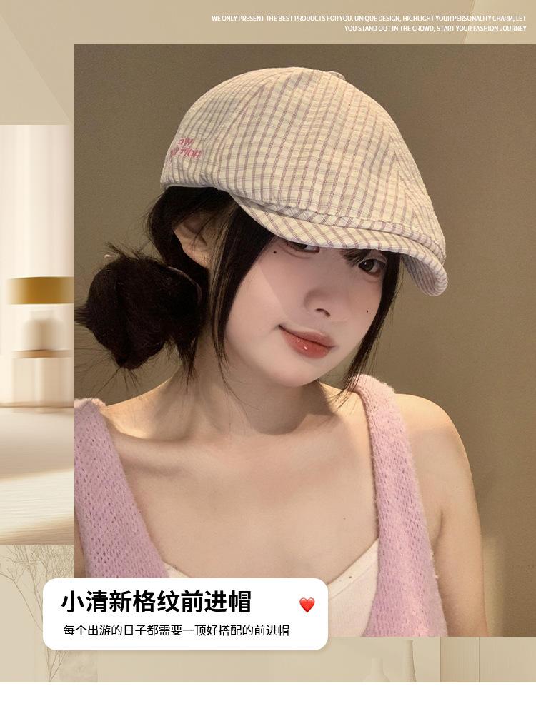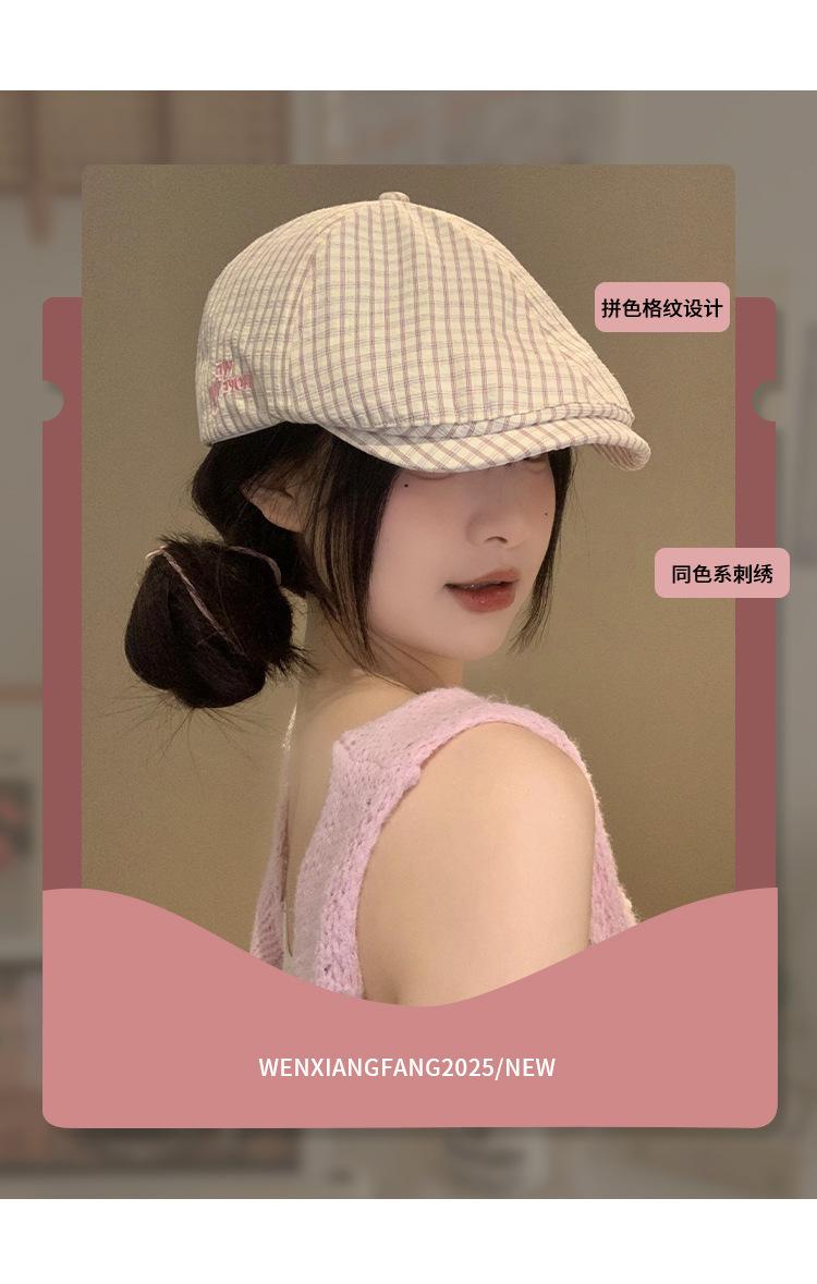 Boina Retro Primavera Nueva Cuadros Rosa Mujer 2025 Anti-desgaste Sombrero Newsboy Cabeza Grande Combinable Sombrero de Lengua de Pato