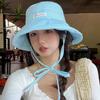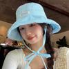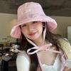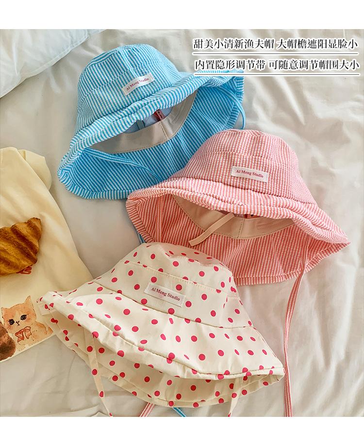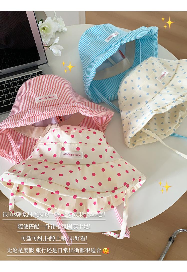 Sombrero de Pescador Rayado Japonés para Mujer Primavera y Verano Estilo Universitario Combinable Protección Solar Sombrero de Sol para Mostrar el Rostro Sombrero de Cubeta Pequeño para Viajes al Aire Libre