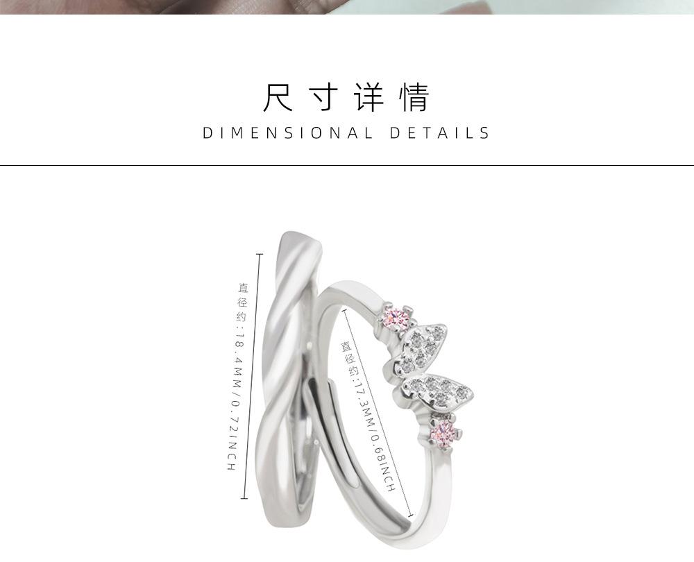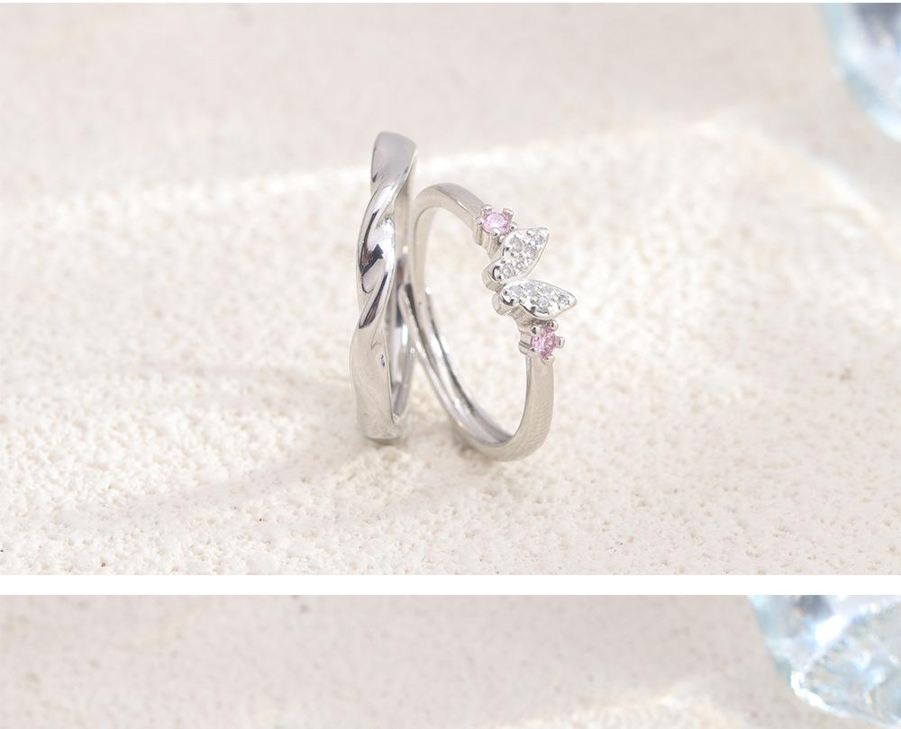 Anillo de Pareja Mobius Un Par de Anillos Sencillos de Alta Gama con Incrustaciones de Diamantes con Forma de Mariposa Moda Versátil Anillo Abierto