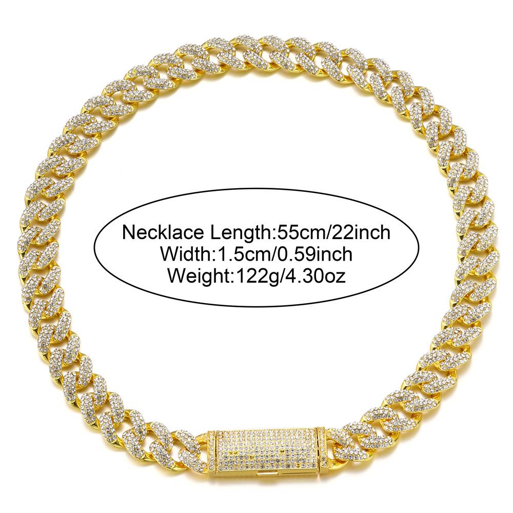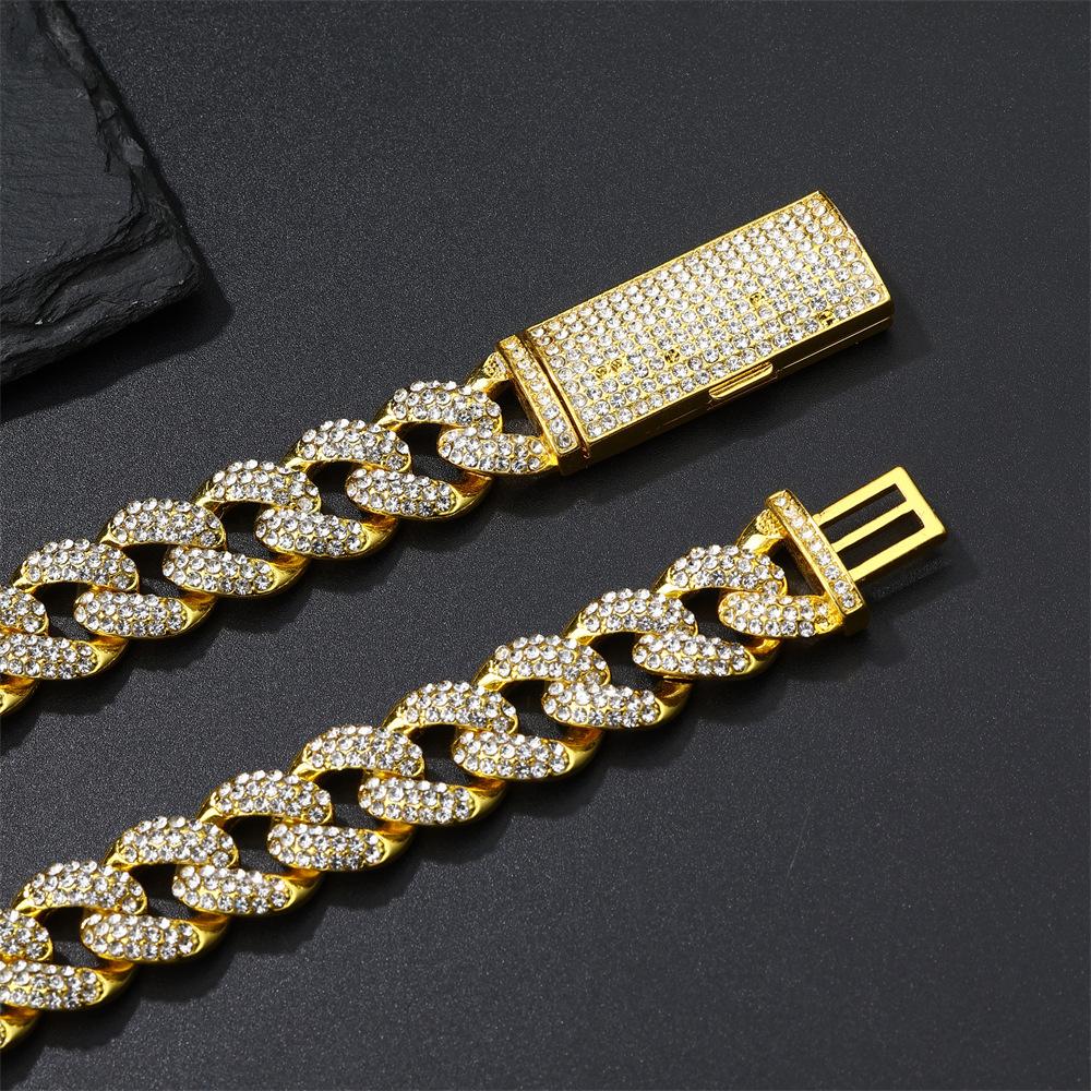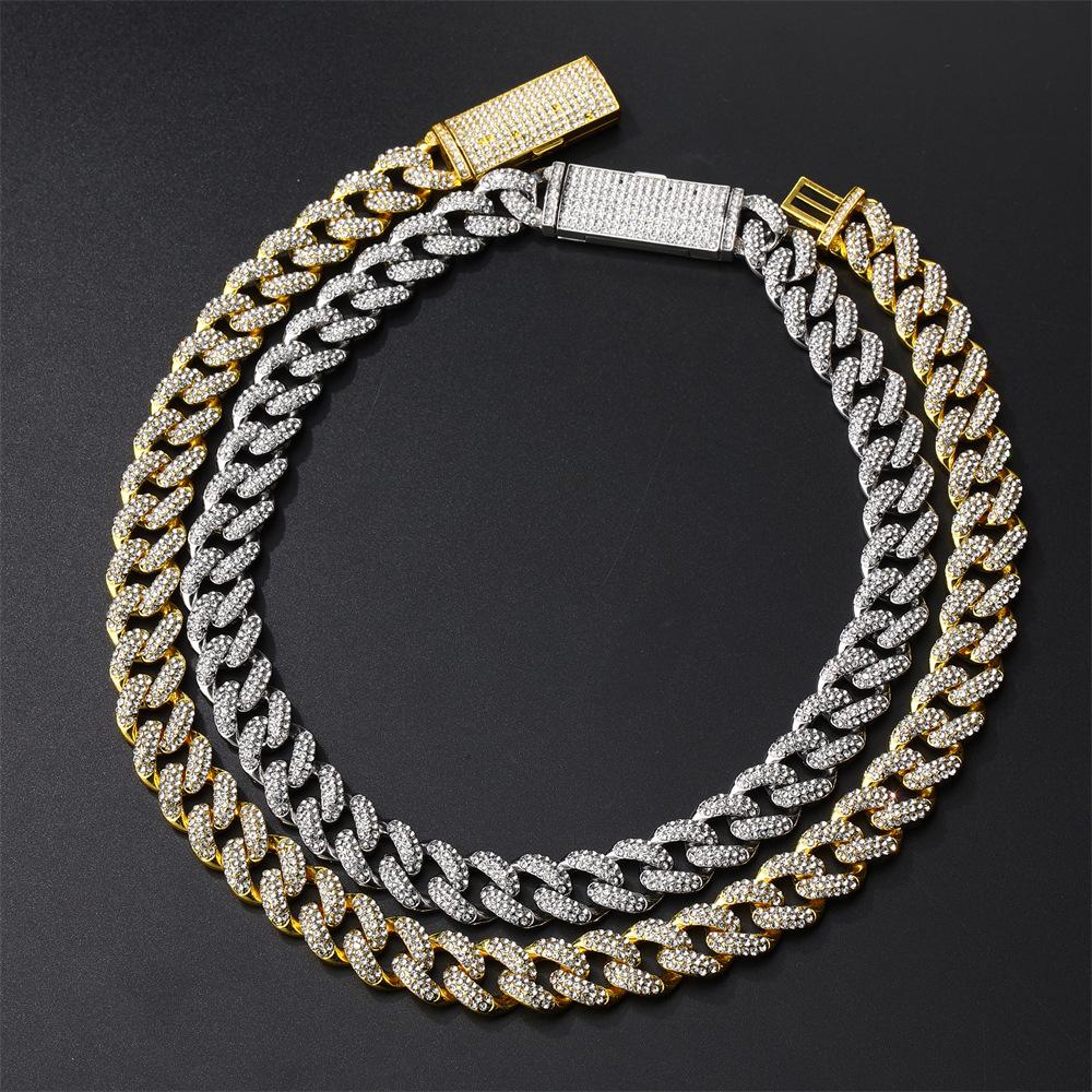 Suministro directo de fabricantes de collares con personalidad de diamantes llenos de diamantes para hombres y mujeres, joyería de cadena cubana transfronteriza de hip-hop, aleación europea y americana, con incrustaciones de diamantes