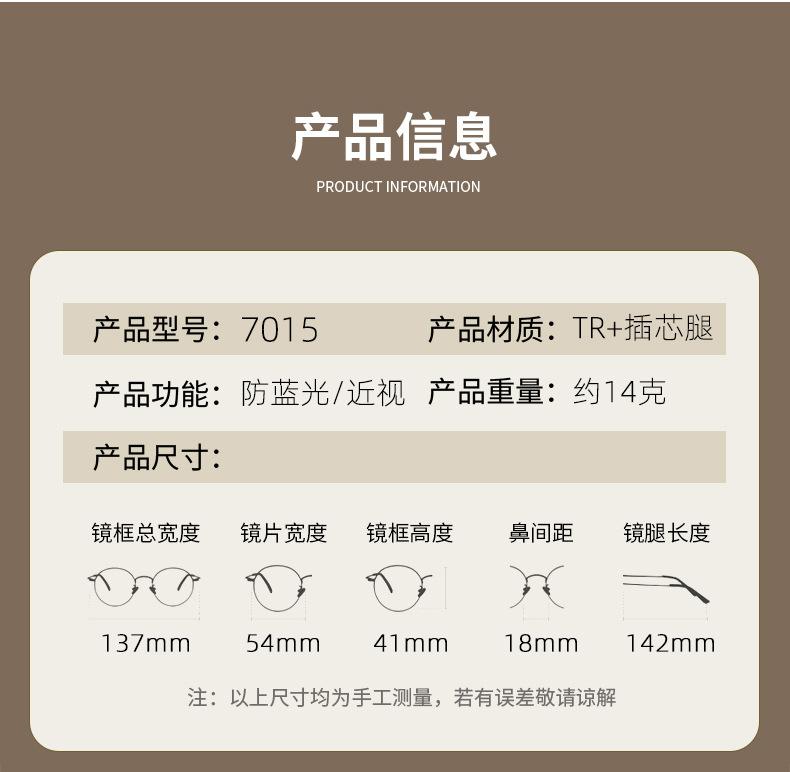 7015 Armazón Transparente Distintivo TR90 Luz Anti-azul Espejo Plano Armazón de Gafas Ópticas para Miopía de Corte Sencillo para Mujer y Hombre