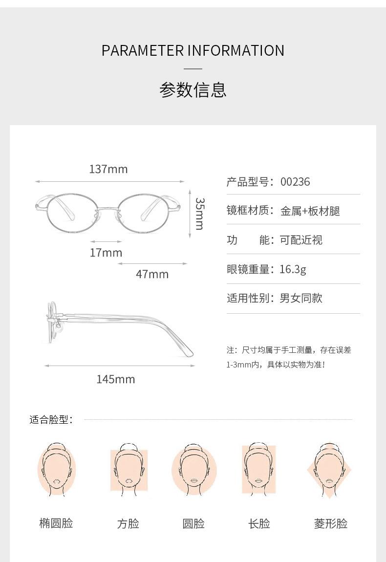00236 Montura de gafas redonda pequeña estilo coreano nueva con montura de leopardo retro para miopía, montura lisa MOSU FAKEME