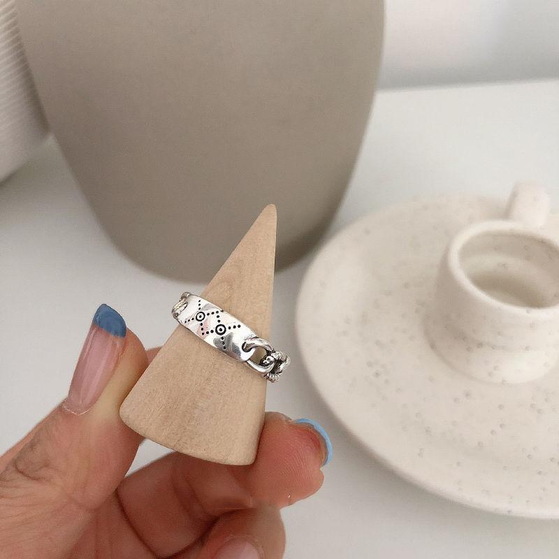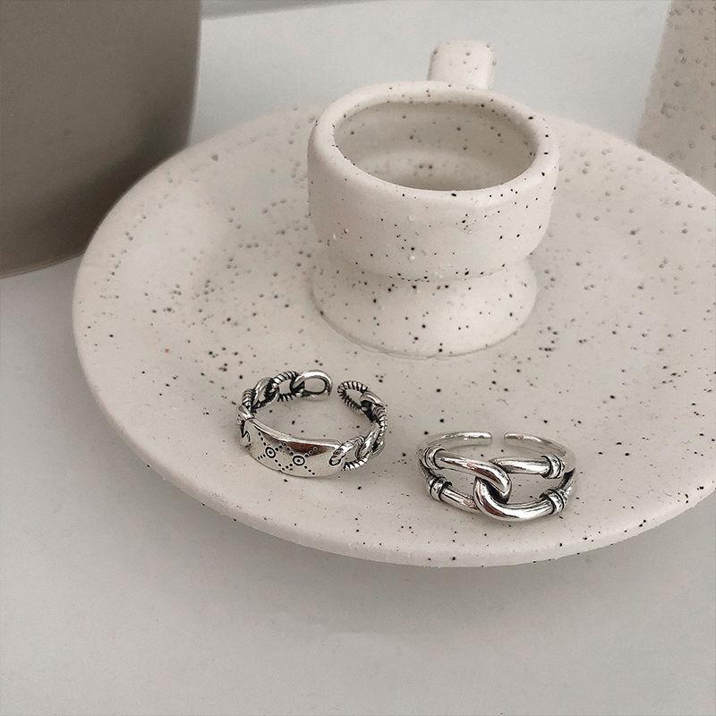 Anillo Estilo Coreano Estudiante Simple Personalidad Combinable Anillo para Dedo Índice Estilo Frío para Mujer Ajustable Retro Plata