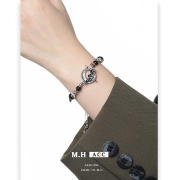 Pulsera original de cuentas de plata rota para mujer, pulsera de diseño de nicho de alta gama que combina con todo, estilo retro, joyería de mano con temperamento al por mayor