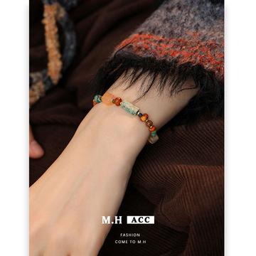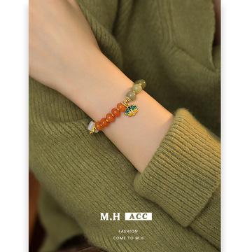 Pulsera retro de cuentas de piedra natural para mujer, lujo ligero, tendencia nacional de alta gama, nueva pulsera de estilo chino, estilo étnico nicho, joyería de mano, tendencia