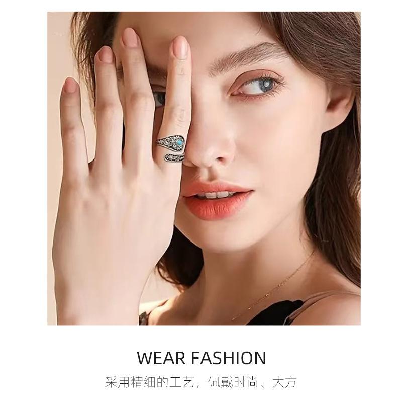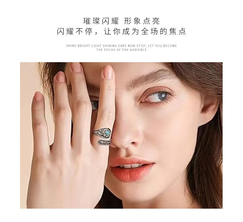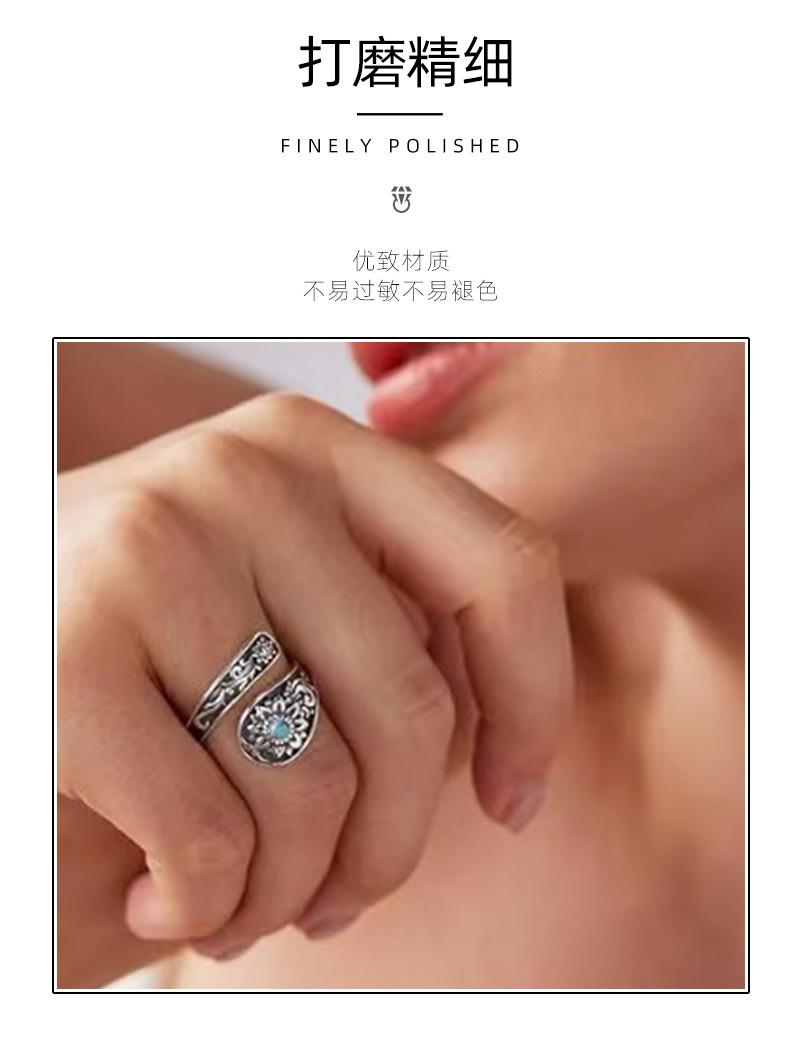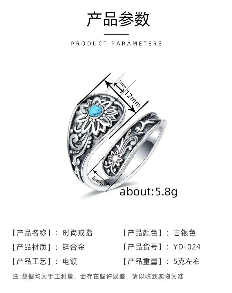 Anillo Nuevo Bohemio Transfronterizo Vintage Girasol Turquesa Anillo para Mujer Flor Apertura Anillo Ajustable
