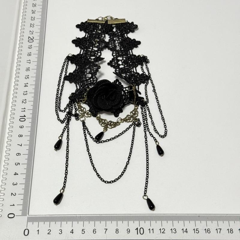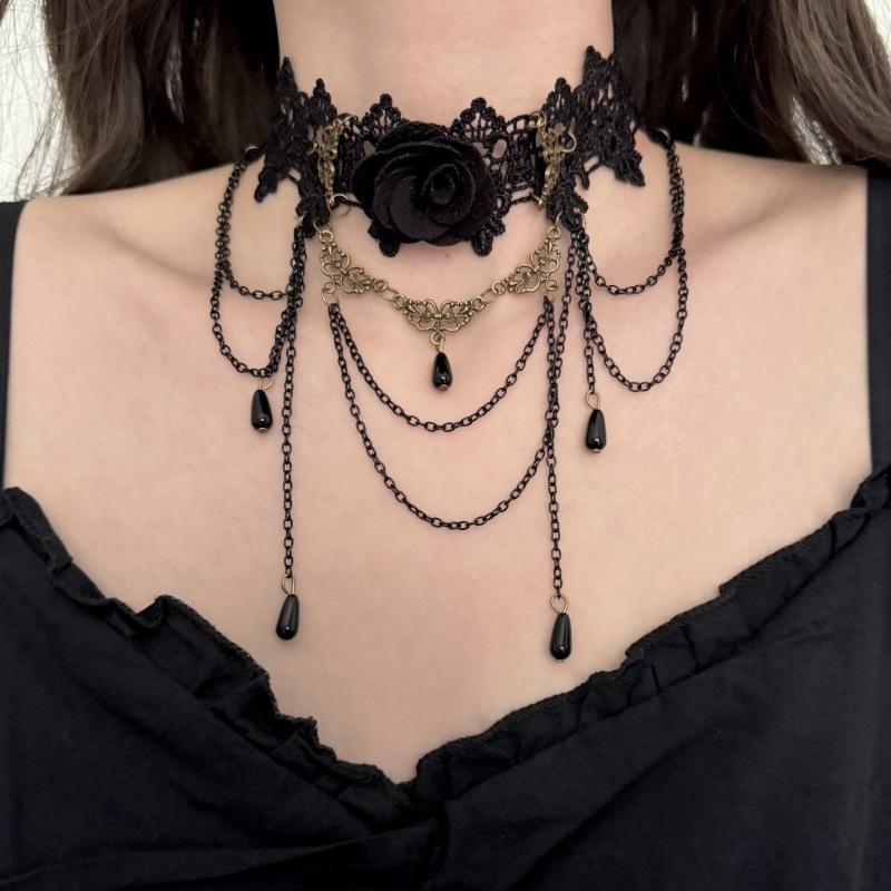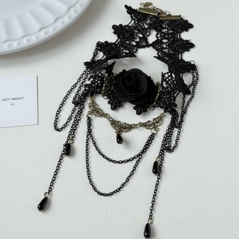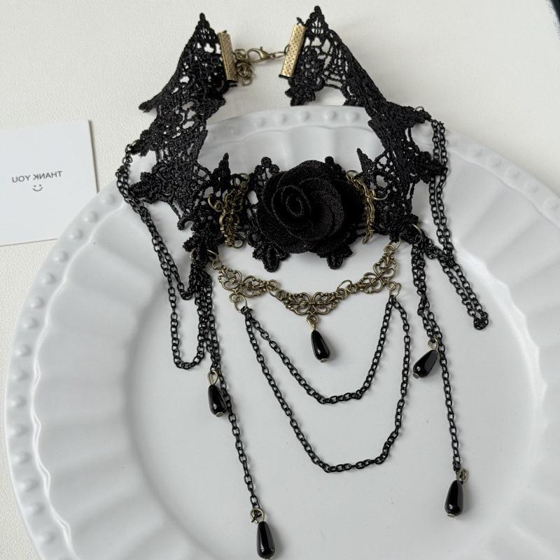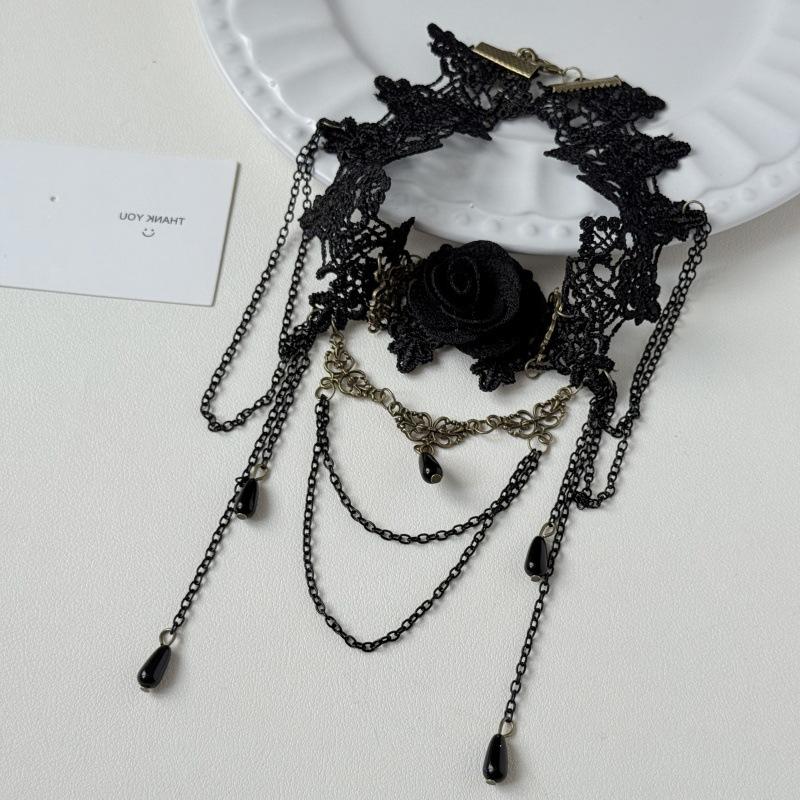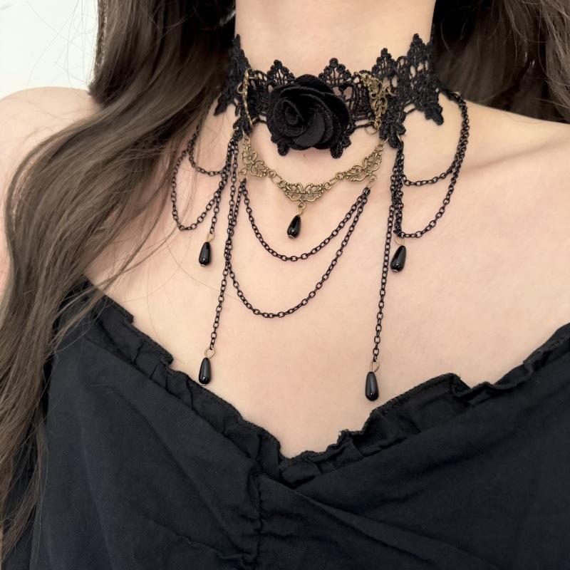 Collar de Encaje Negro con Flor, Borla de Gota de Agua, Niche para Mujer, Gargantilla de Alta Gama, Lujo Ligero, Moda, Cadena para Clavícula
