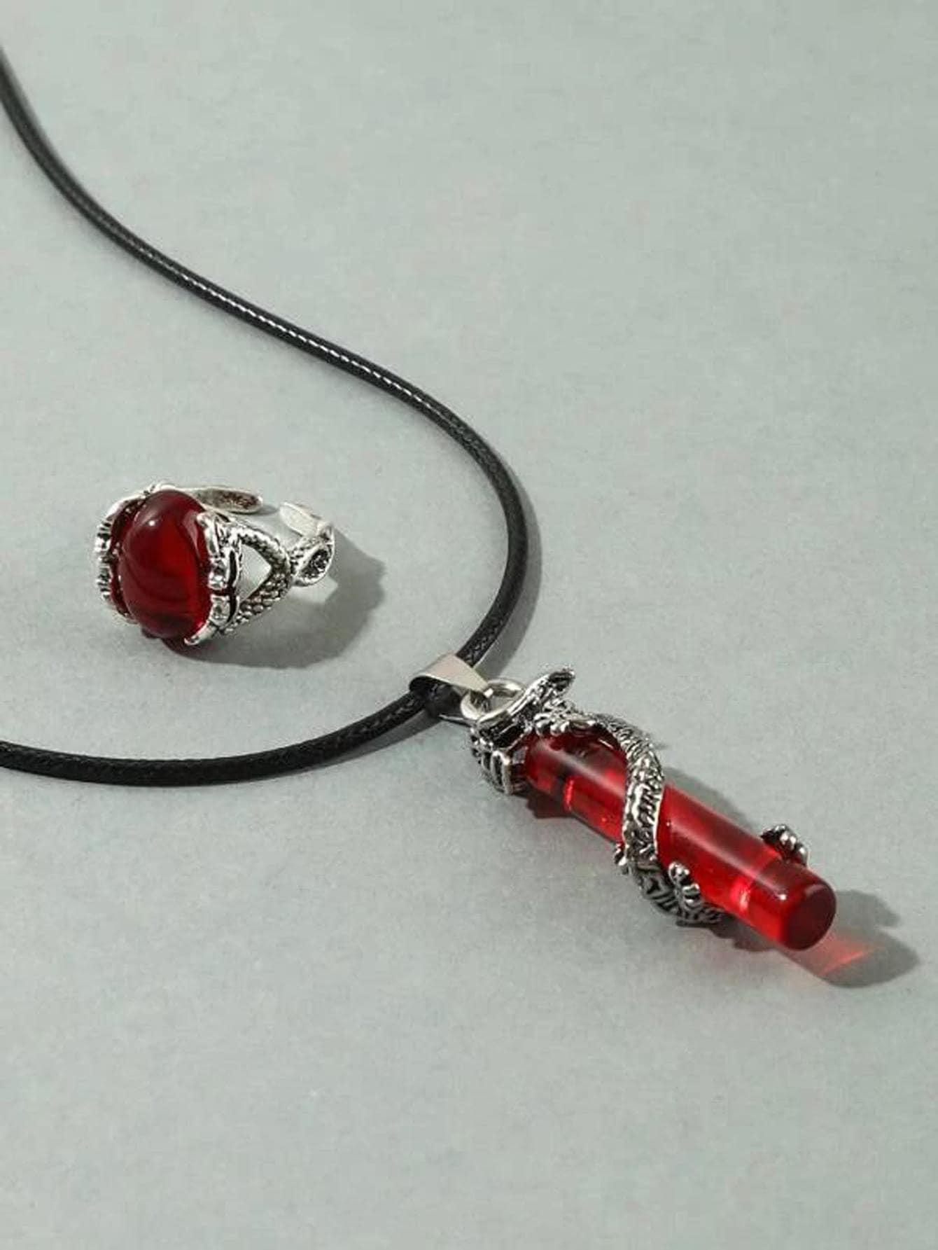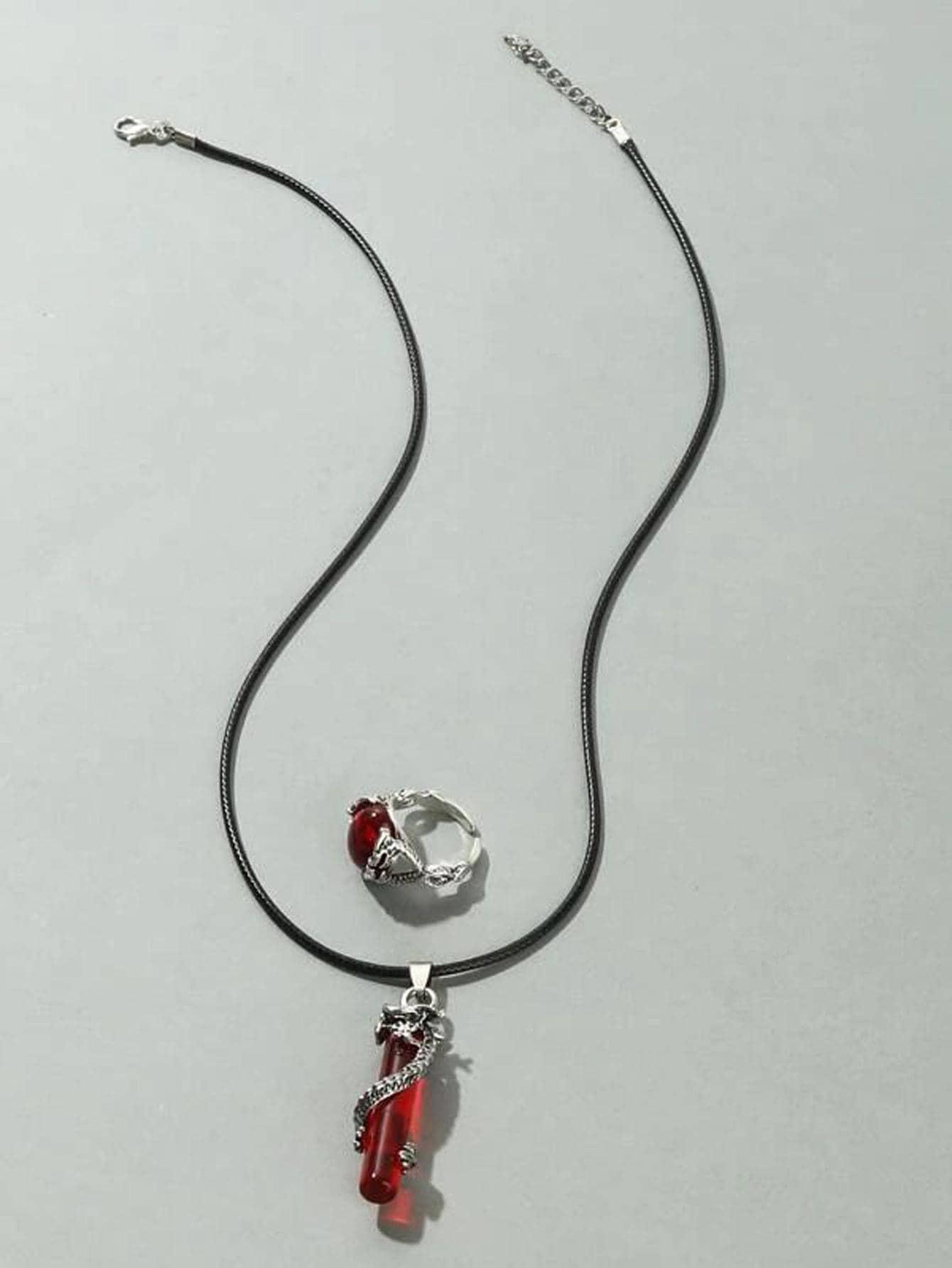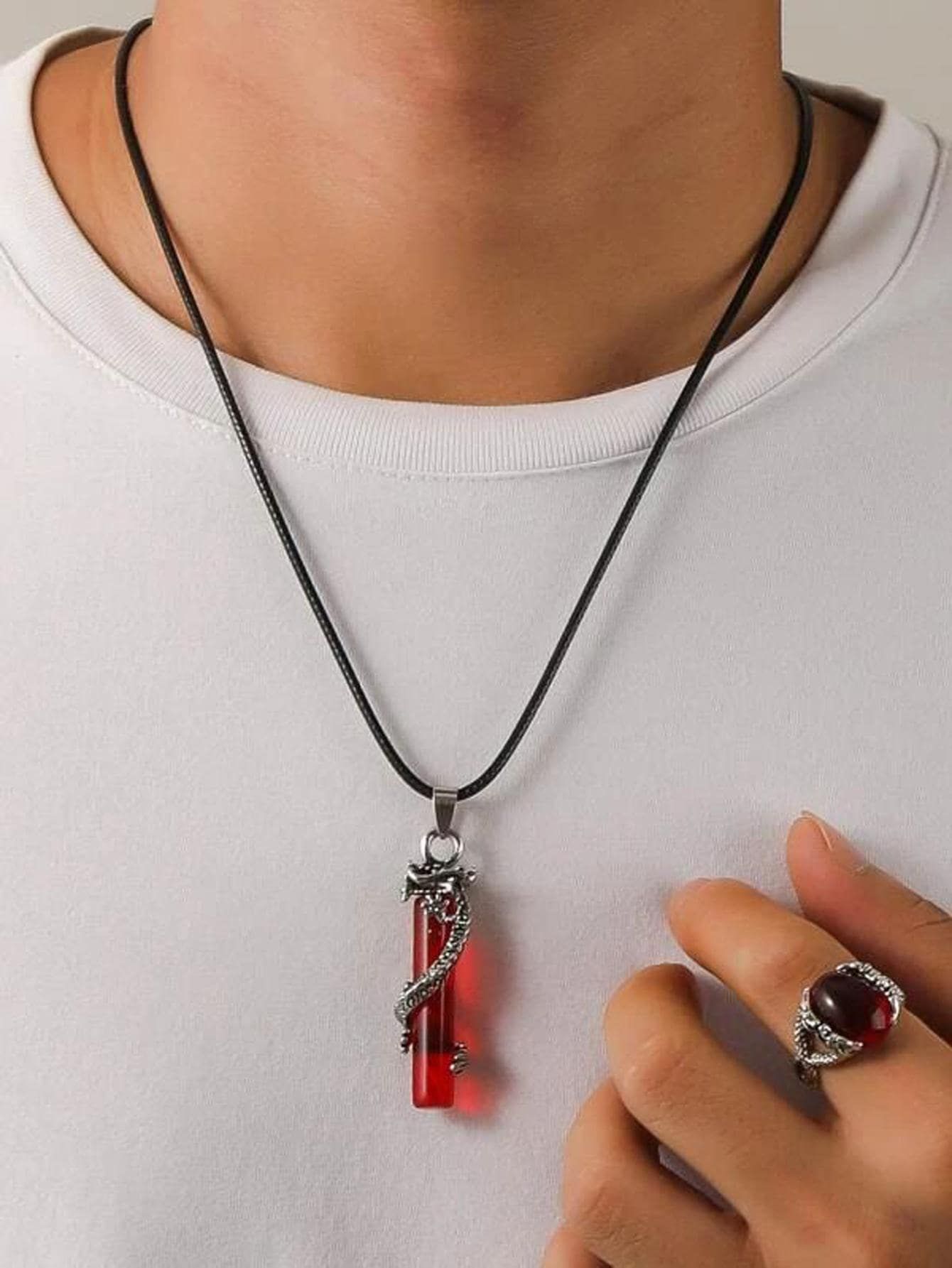 Moda Transfronteriza Retro Anillo Colgante de Columna Panlong Accesorios Joyería para Hombre Traje Colgante de Dragón Distintivo Cadena Clavicular