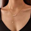 Collar Elegante Europeo y Americano Francés OPK para Mujer Acero Inoxidable Nicho Diseño de Lujo Ligero Borla de Perlas Cadena de Clavícula de Acero Titanio