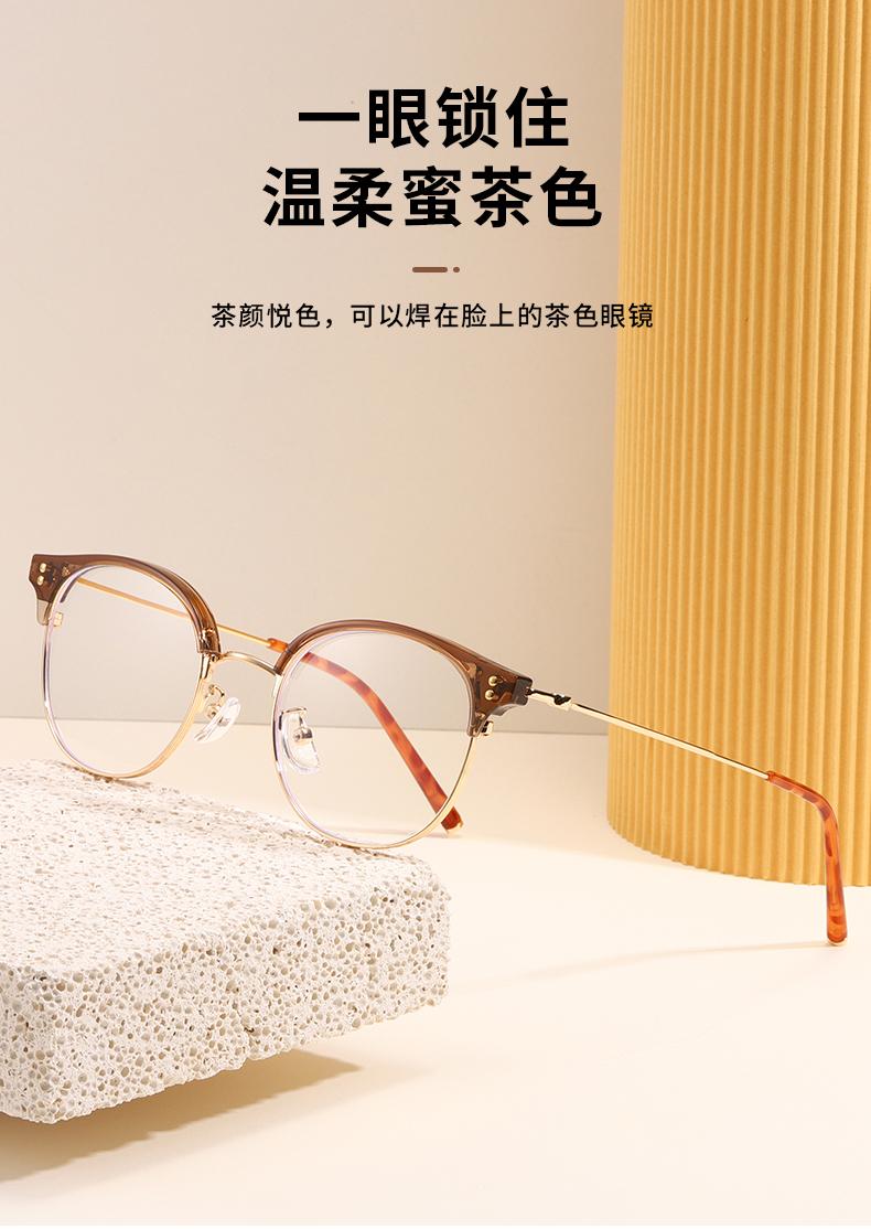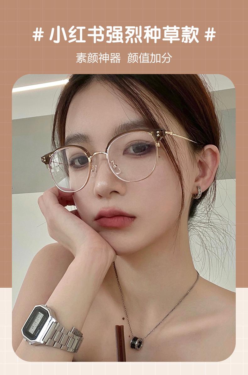 Gafas ultraligeras de color marrón frío para miopía, estilo coreano femenino, sin maquillaje, se pueden equipar con montura de medio marco retro de grado, montura de gafas de cara pequeña 50