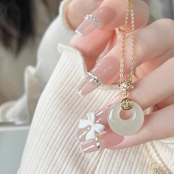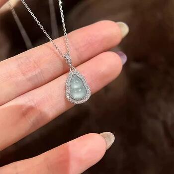 Collar Hebilla de la Paz de Loto para Mujer Lujo Ligero Estilo Étnico Imitación Calcedonia Cadena Clavícula Moda Versátil Sensación de Alta Gama Colgante Hoja de Loto | Collar de Cintura Delgada para Mujer Cadena de Clavícula Redonda Simple y Fresca Moda Versátil Colgante Geométrico de Anillo Doble de Alta Gama | Collar de Calabaza de Calcedonia Azul Imitación para Mujer Simple Estilo Chino Nuevo Cadena Clavicular Versátil Colgante de Diamantes Zirconia de Gama Alta con Diamantes Completos | ||