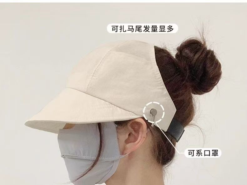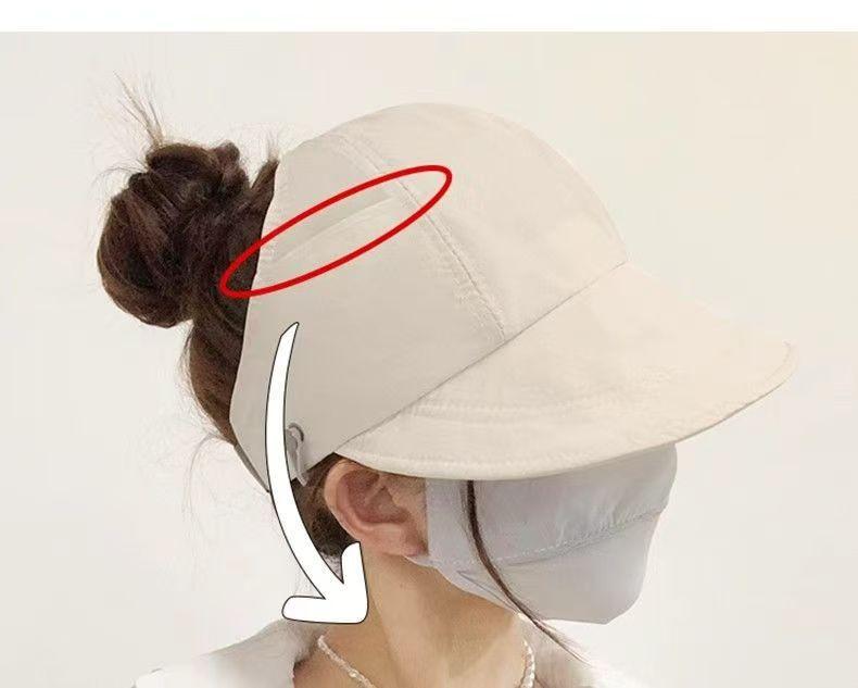 Mascarilla Cubre-Rostro, Gorra de Pico de Pato, Protección Solar, Sombrero Visera de Verano, Sombrero para Sol con Cola de Caballo, Cubre-Rostro para Mujer, Secado Rápido, Transpirable