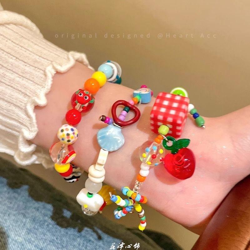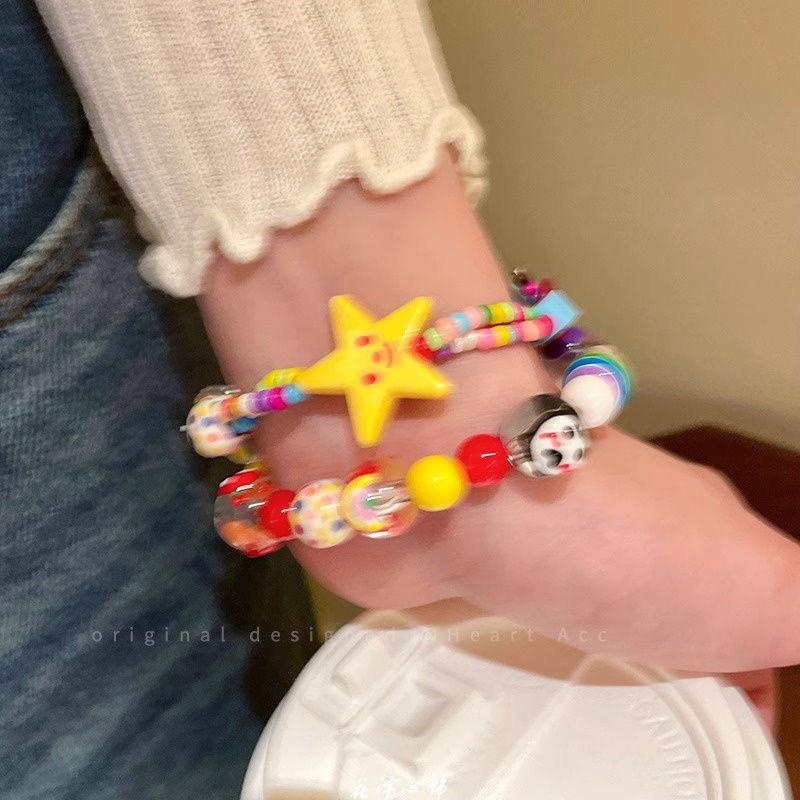 Pulsera de cuentas con forma de estrella de manzana para niños, bonita pulsera de dopamina con personalidad de verano para mujer, pulsera de gran valor para fiestas estudiantiles.