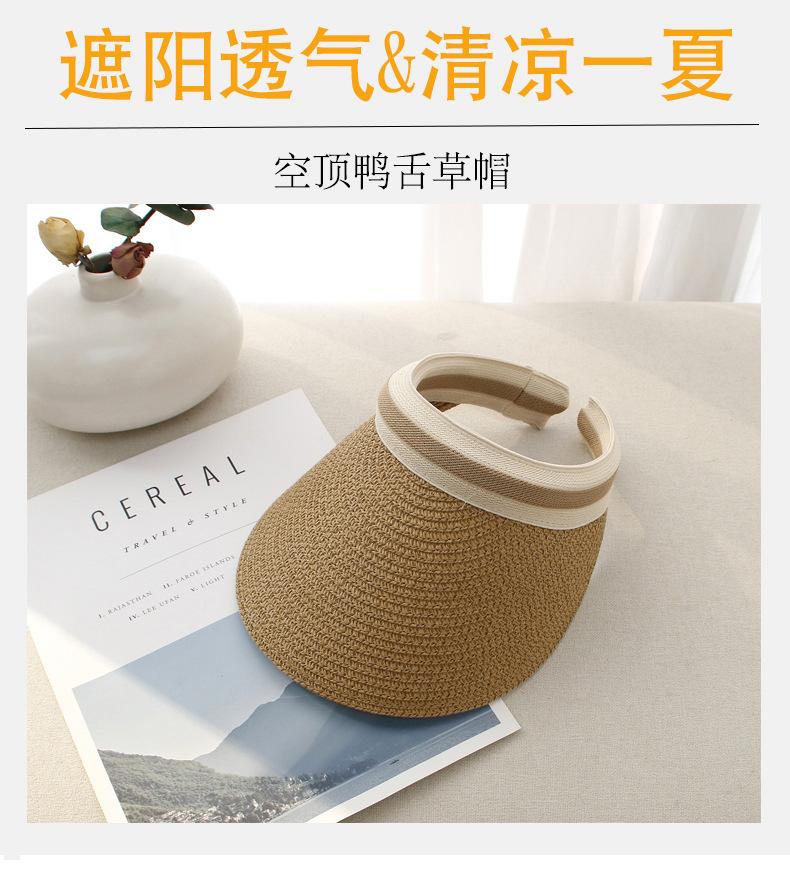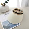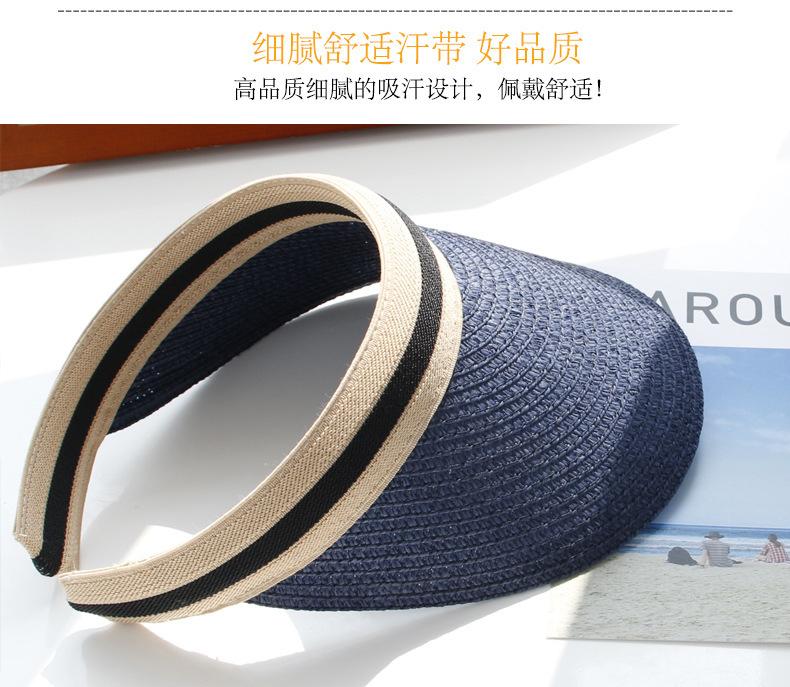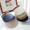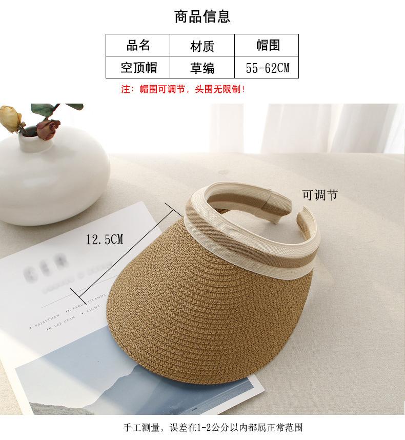 2019 Sombrero de Paja Tejido a Mano con Visera Vacía de Rafia para el Sol Sombrero de Sol de Verano Coreano para Mujer