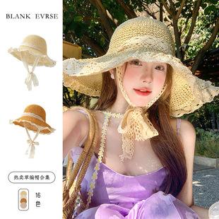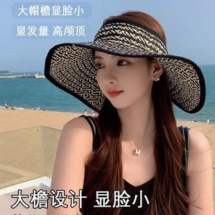 2025 Nuevo Sombrero de Paja Plano Francés para Mujer Circunferencia de Cabeza Grande Playa Mar Fedora Tejido Sombrero para el Sol Verano