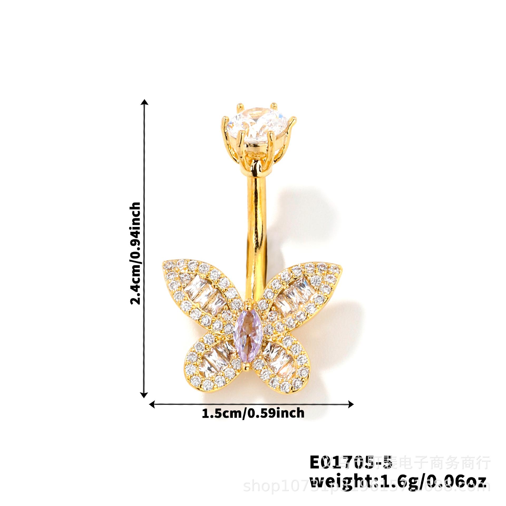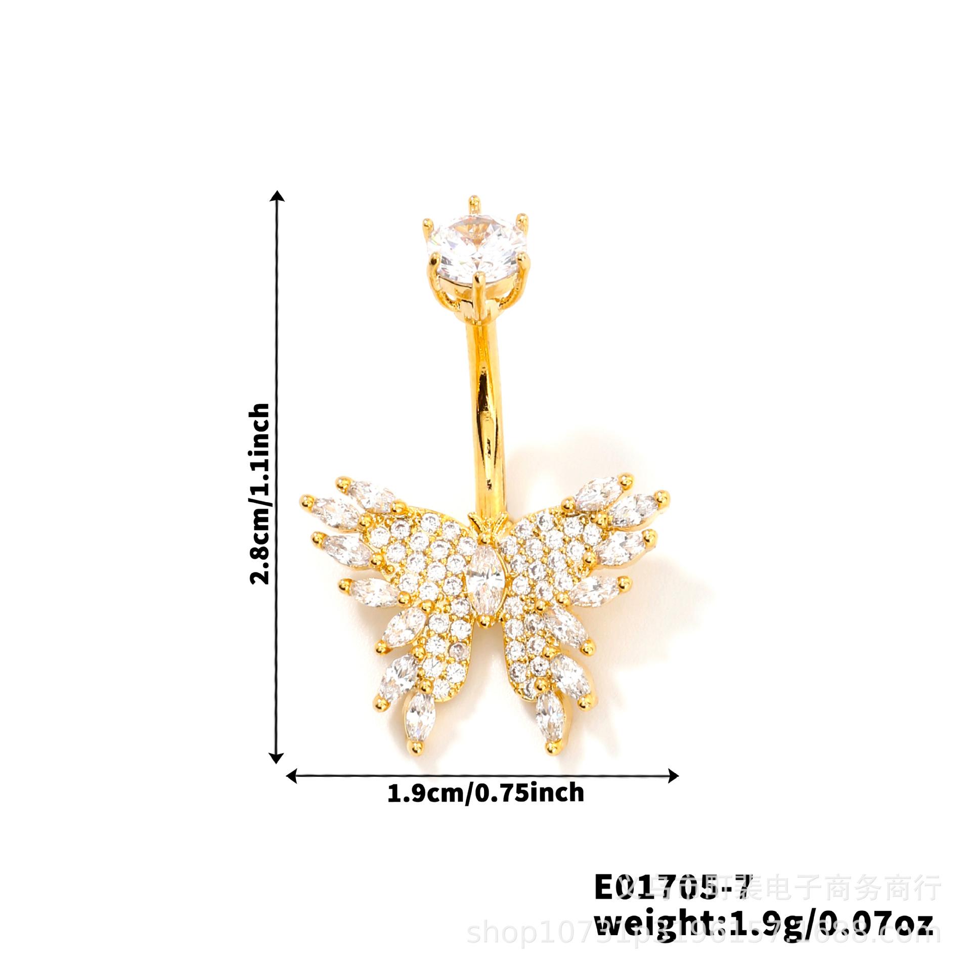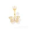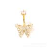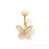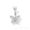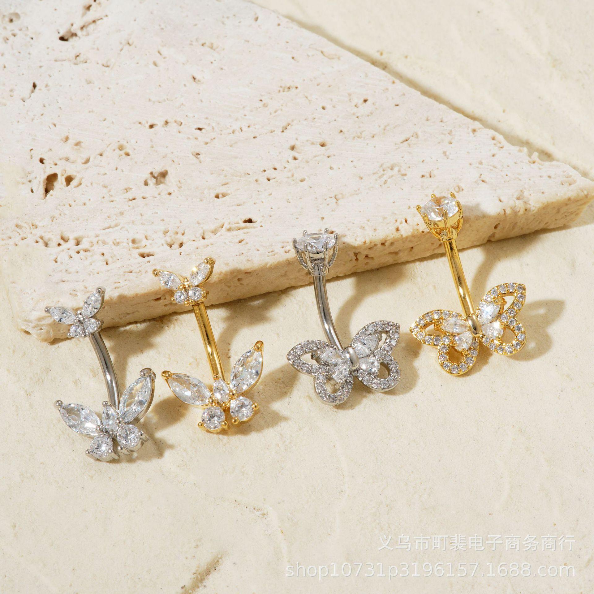 Uñas de ombligo transfronterizas, nuevas, europeas y americanas, con microincrustaciones de circonita en forma de mariposa, de acero inoxidable, venta directa de fábrica.
