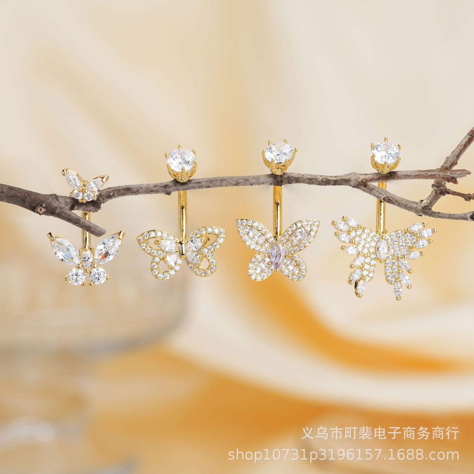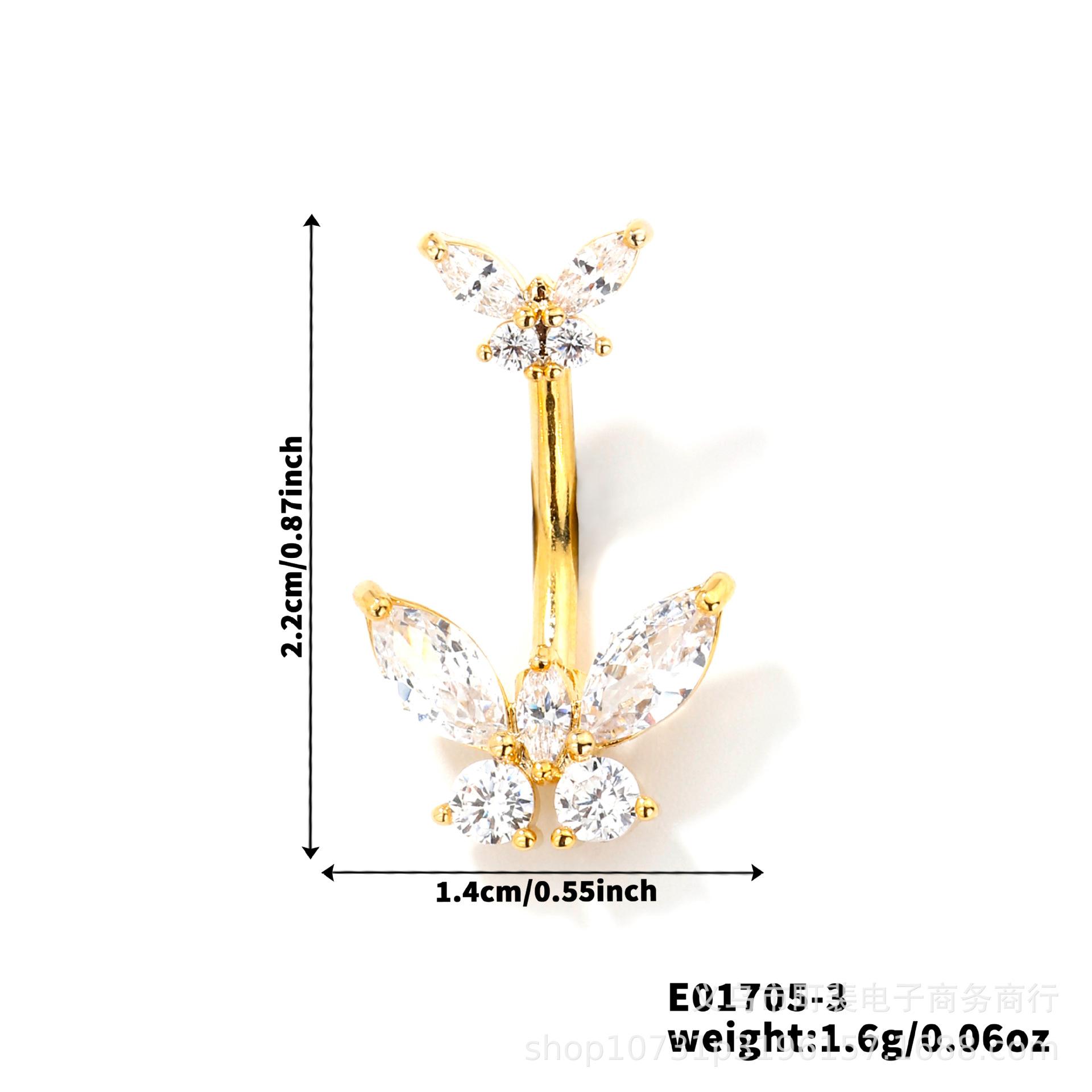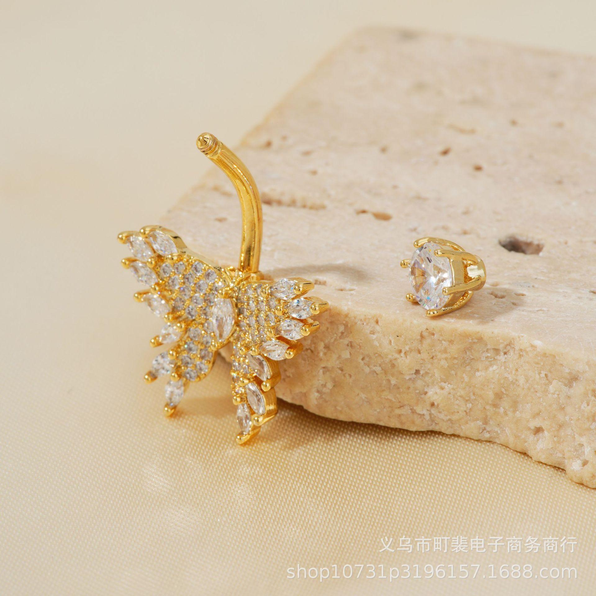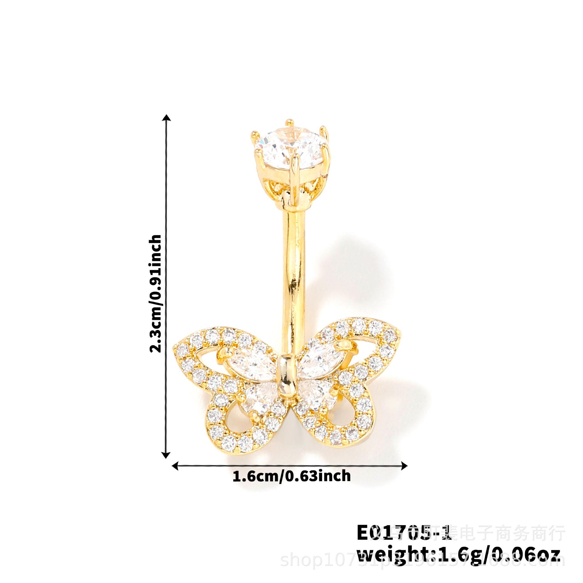 Uñas de ombligo transfronterizas, nuevas, europeas y americanas, con microincrustaciones de circonita en forma de mariposa, de acero inoxidable, venta directa de fábrica.
