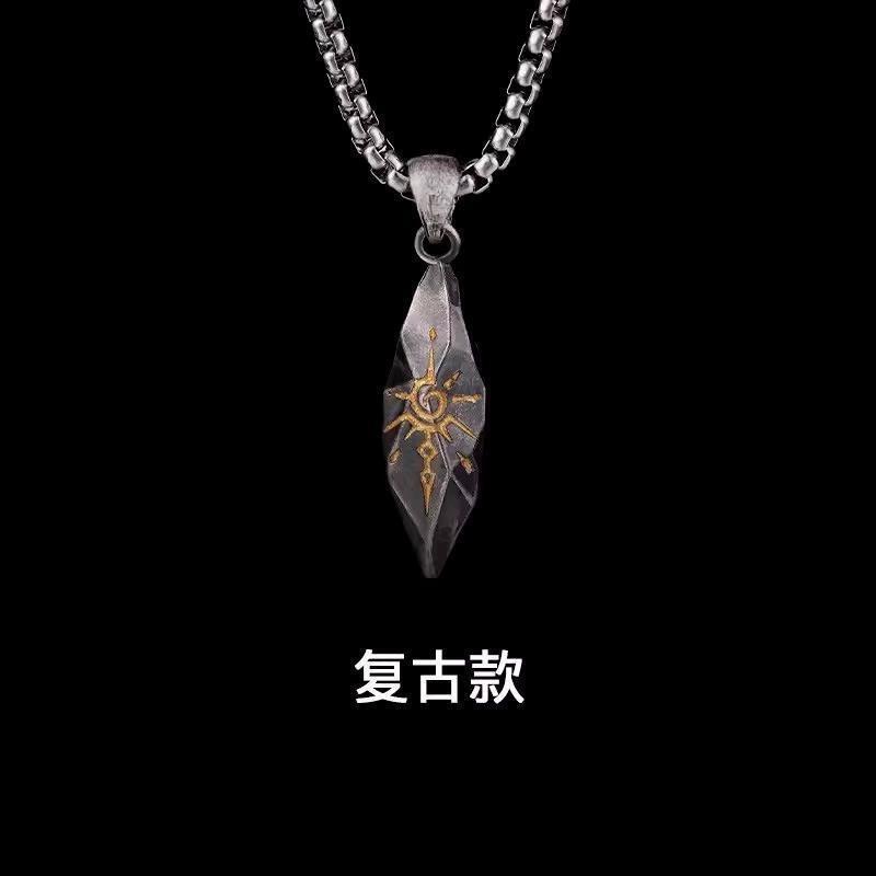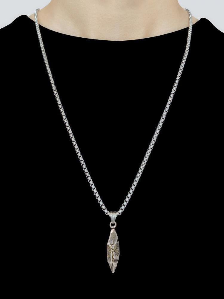 Collar vintage con colgante de meteorito de piedra de los deseos para hombre, personalizado, moderno y moderno, estilo neutro, cadena de lana de acero inoxidable, accesorios.