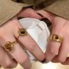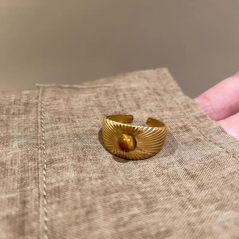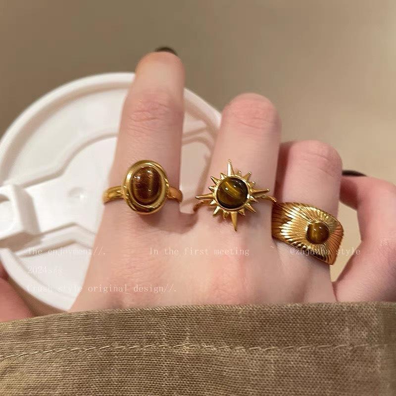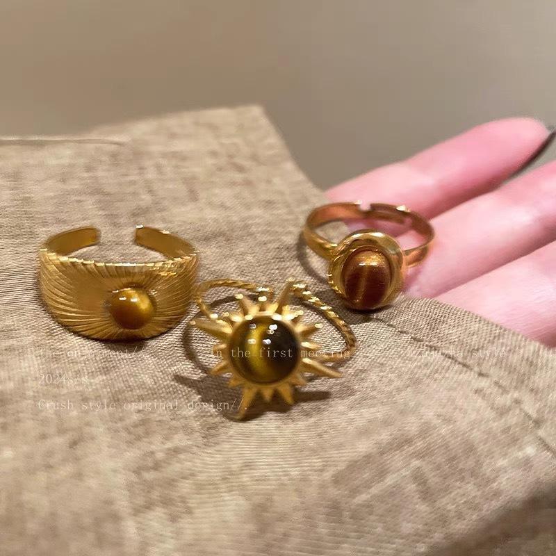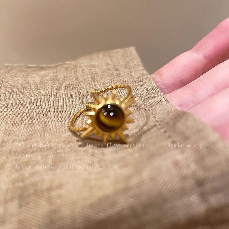 Anillo Ojo de Tigre Flor de Sol Dorado para Mujer 2025 Nuevo Anillo de Sentido de Alto Grado Diseño Nicho Anillo Único