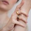 Gold oval ring, Gold sunflower ring, Gold rice grain ring, Gold ring [three-piece set]