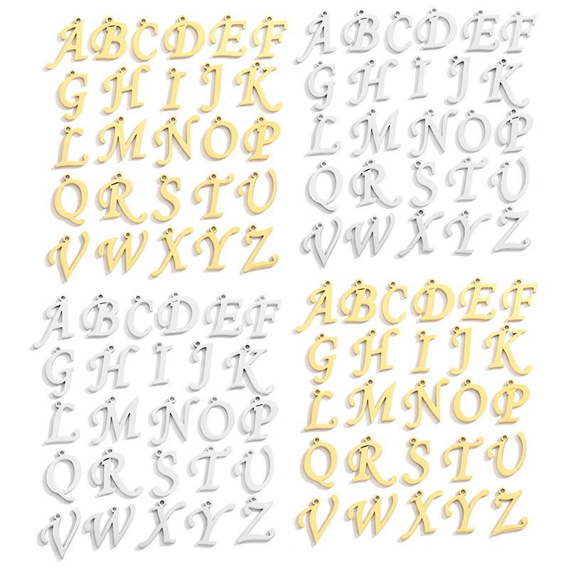 Colgante decorativo de acero inoxidable con 26 letras en inglés para pulsera, collar y accesorios de joyería S126