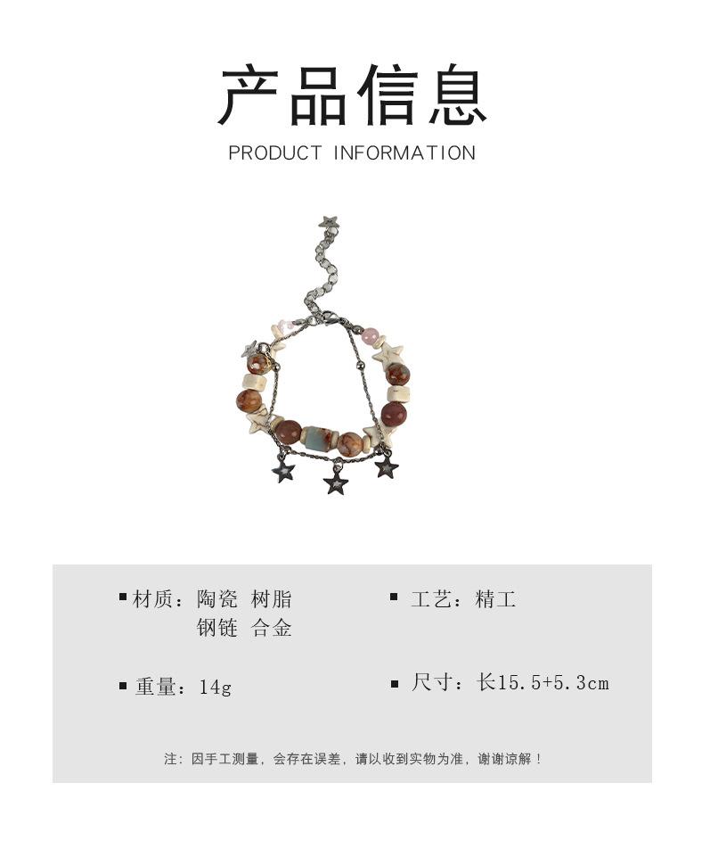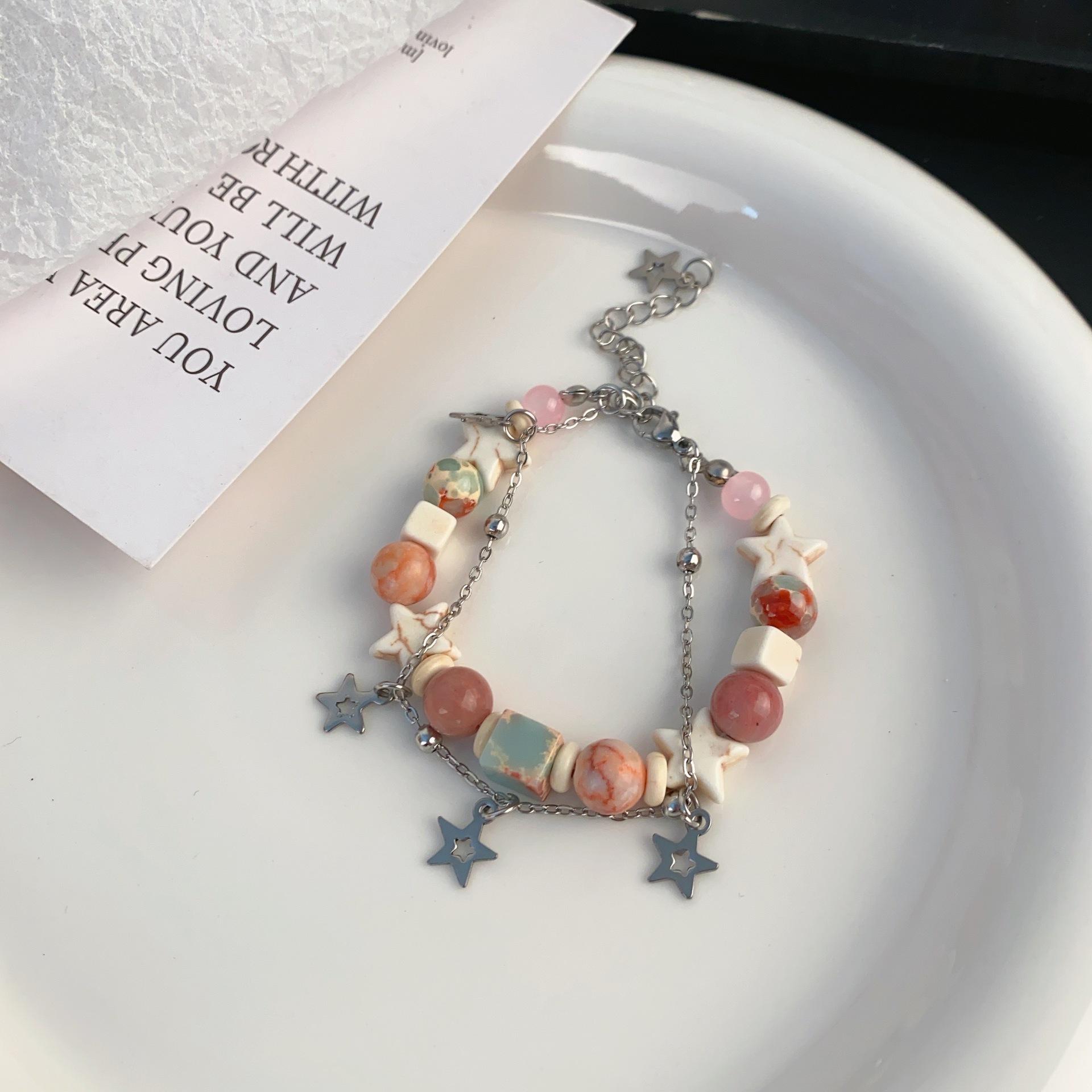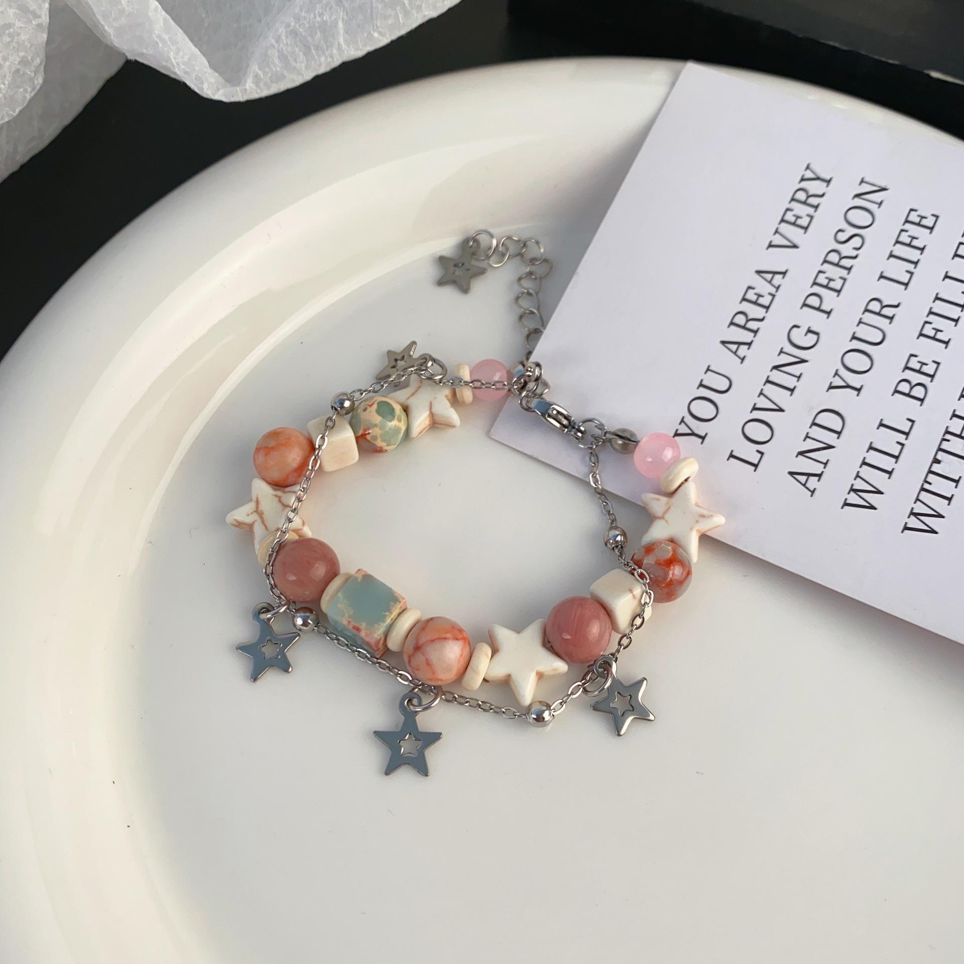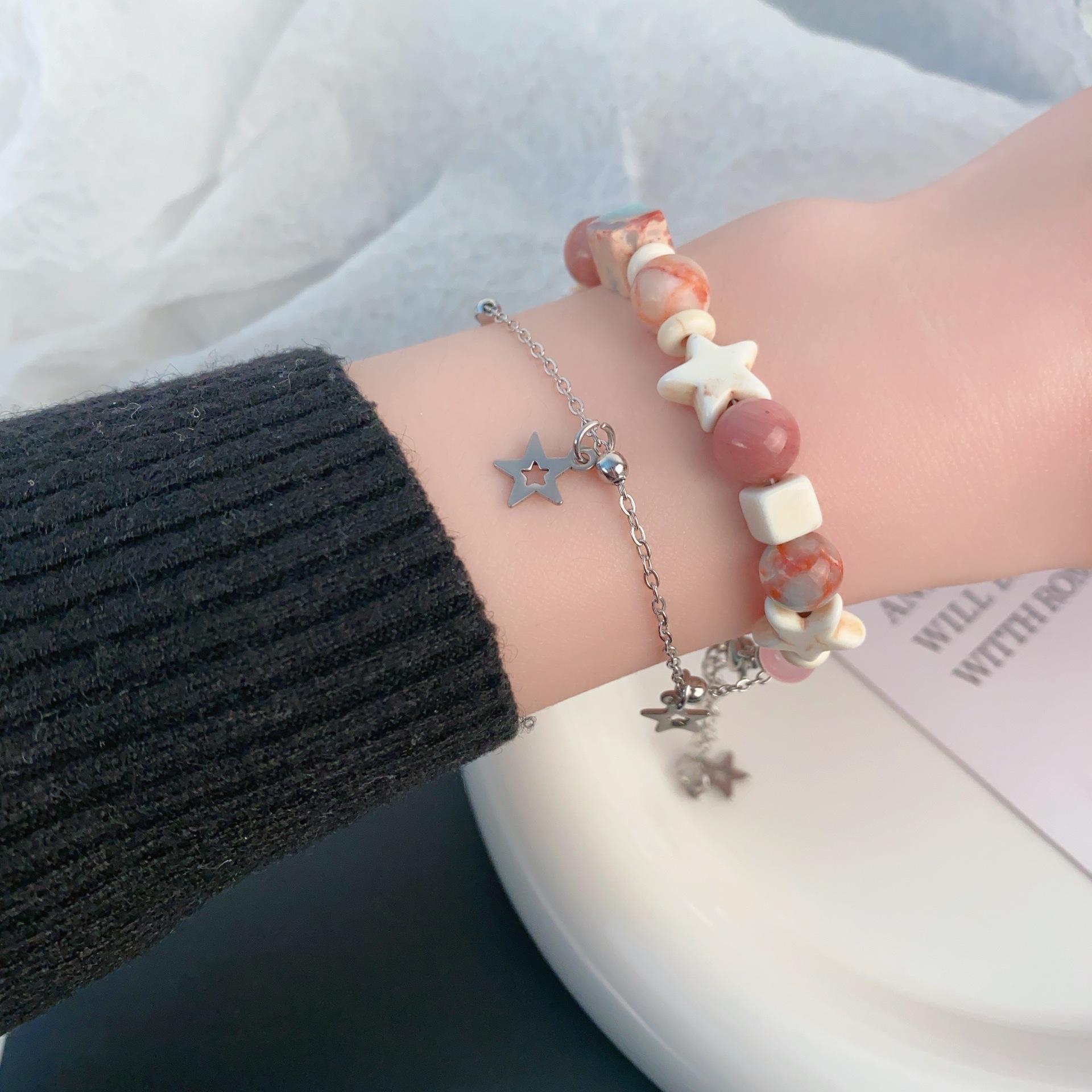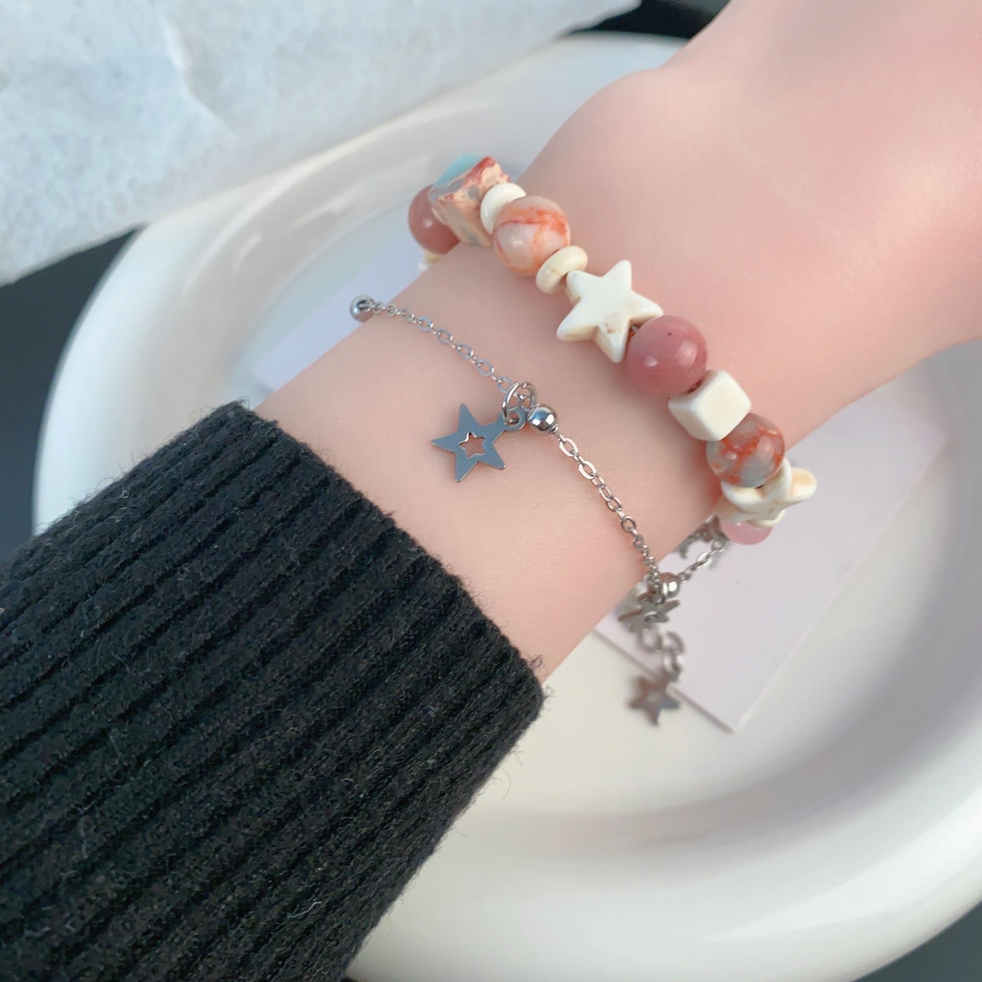 Pulsera de estrella apilada con cuentas de color crema dulce, pulsera de alta gama de nicho, pulsera de moda con forma de corazón para chica dopamina