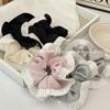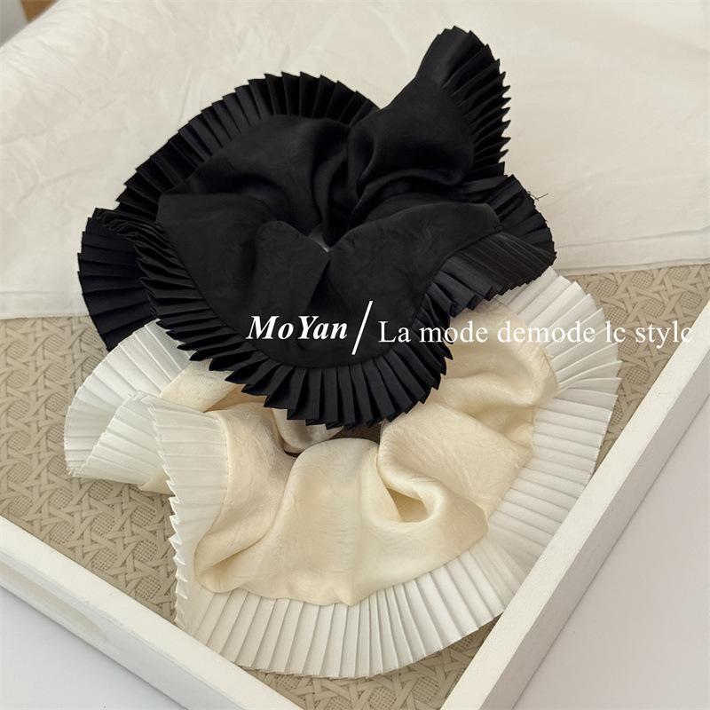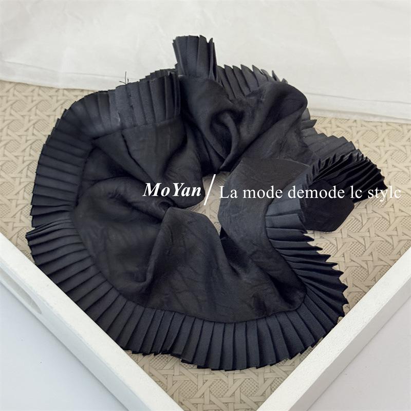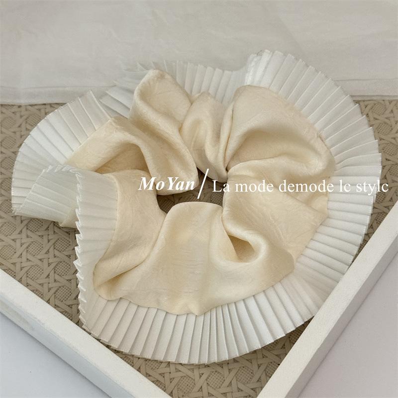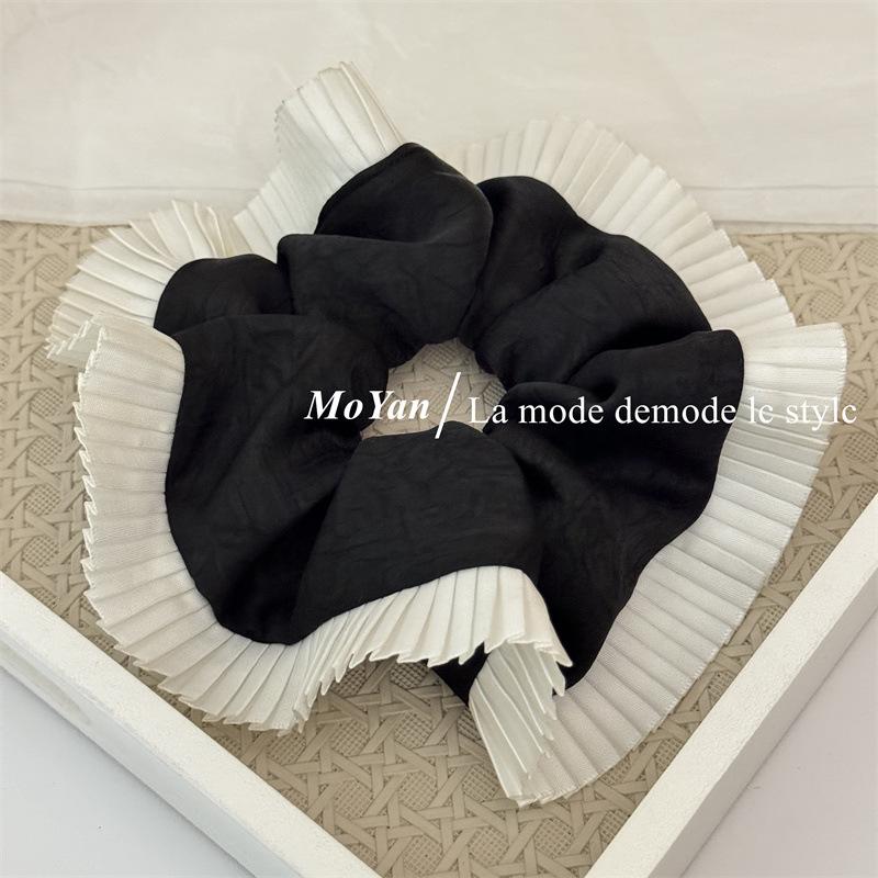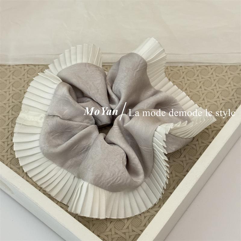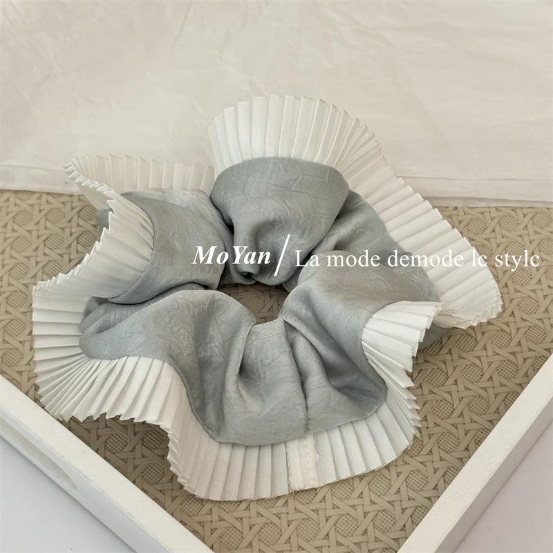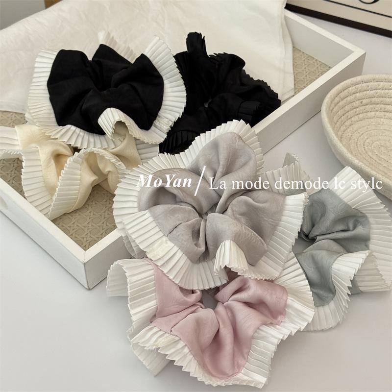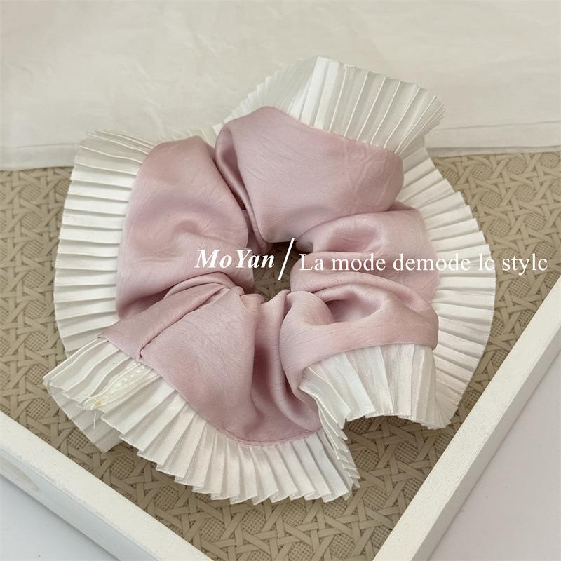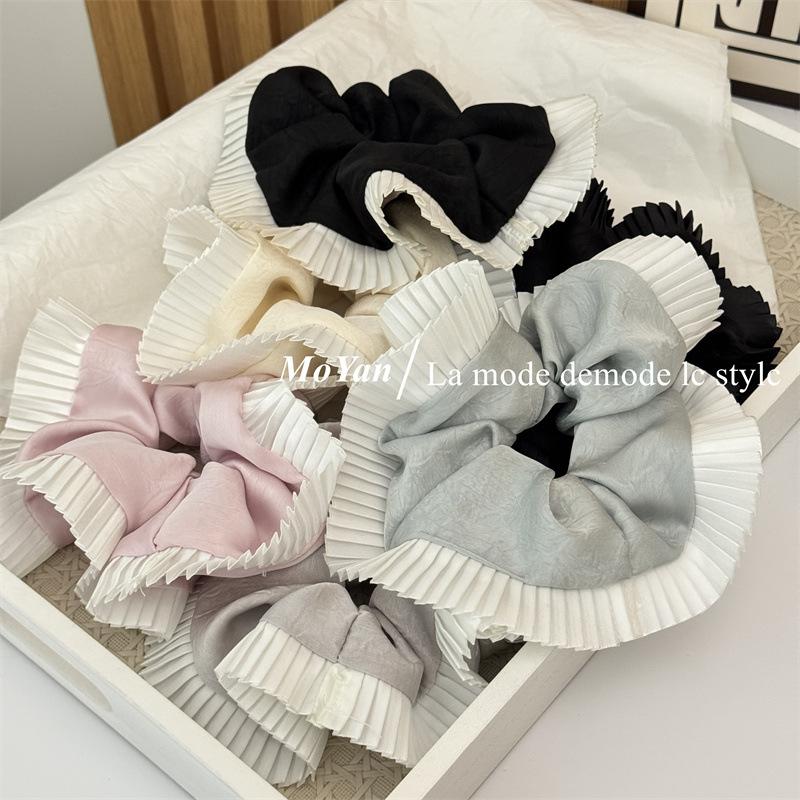 Lazo para el cabello de intestino grueso de satén texturizado plisado estilo coreano para mujer, de alta gama, con cuerda para atar a contraste de color, elegante lazo para el cabello de coleta, flor para la cabeza