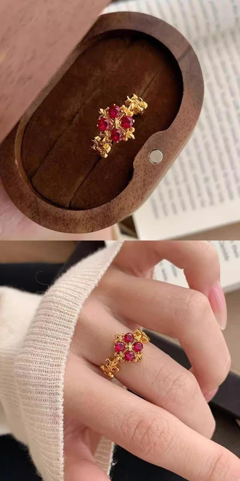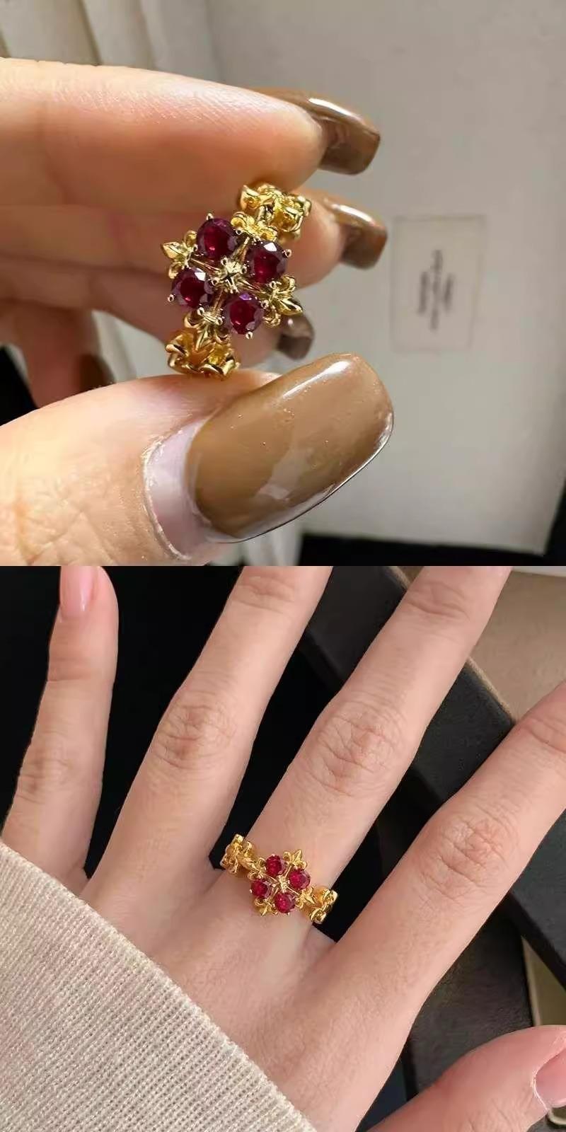 Compra Anillo de Flor de Iris Rosa Roja Exquisito de Lujo Ligero Estilo Retro Francés Combinable Diseño Nicho para Mujer Sentido Avanzado Abertura Ajustable al por mayor en Joom.pro