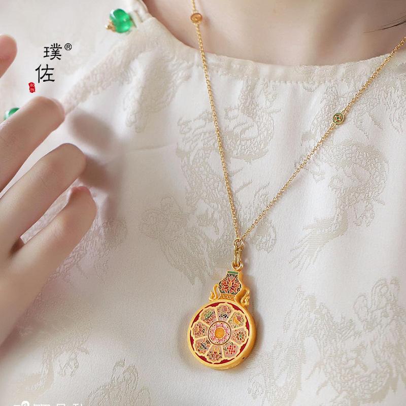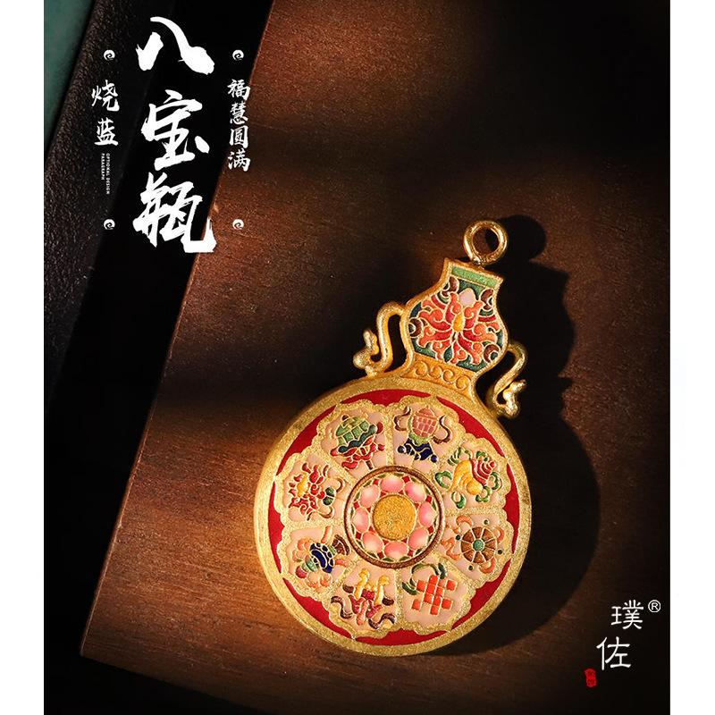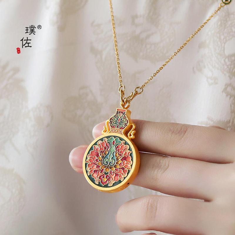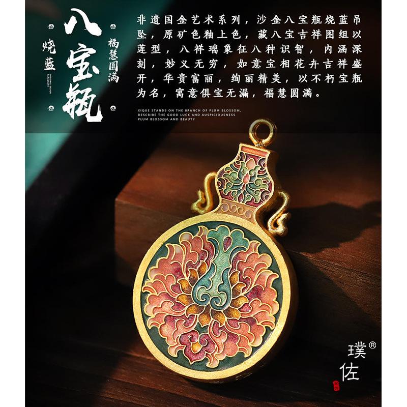 Tienda de oro con accesorios de oro DIY, quema a alta temperatura, azul, jarrón de loto de los ocho tesoros, filamento, esmalte, colgante de jarrón, collar para mujer