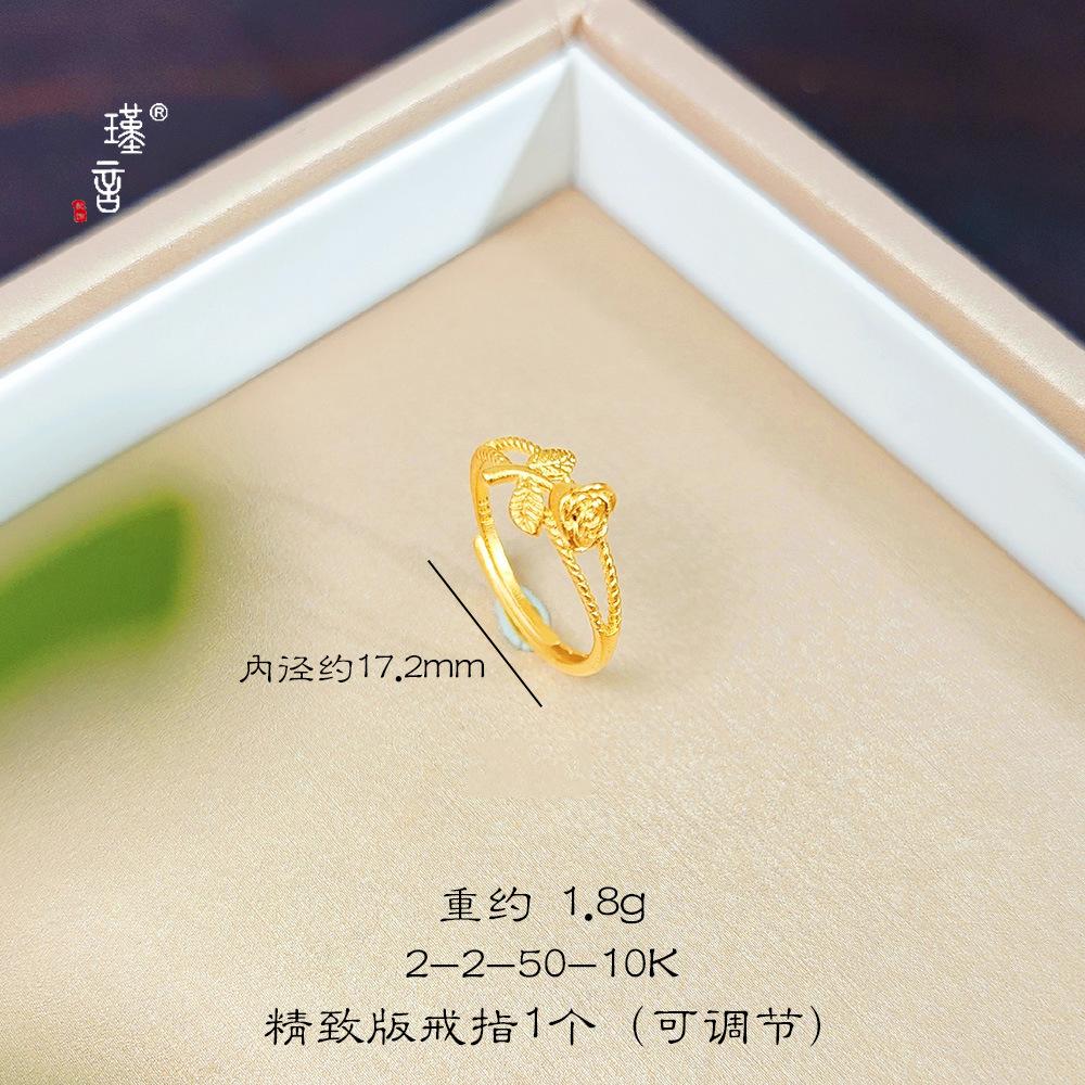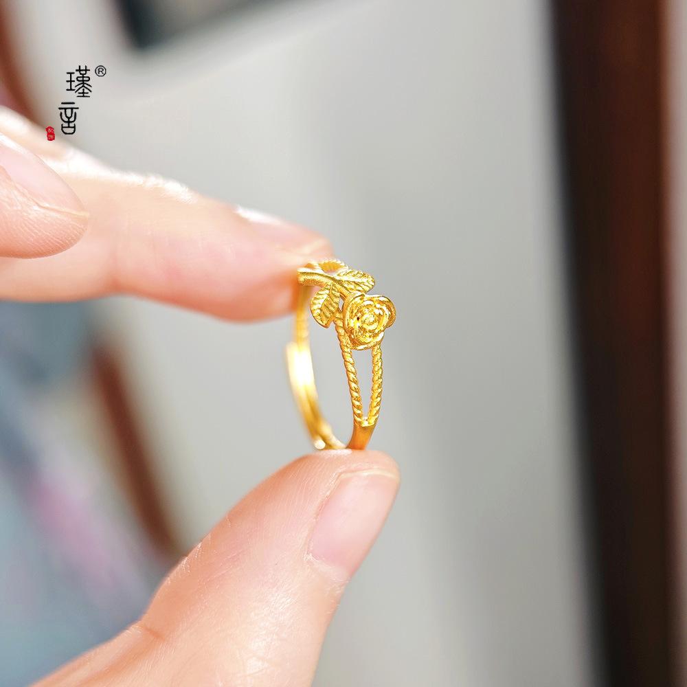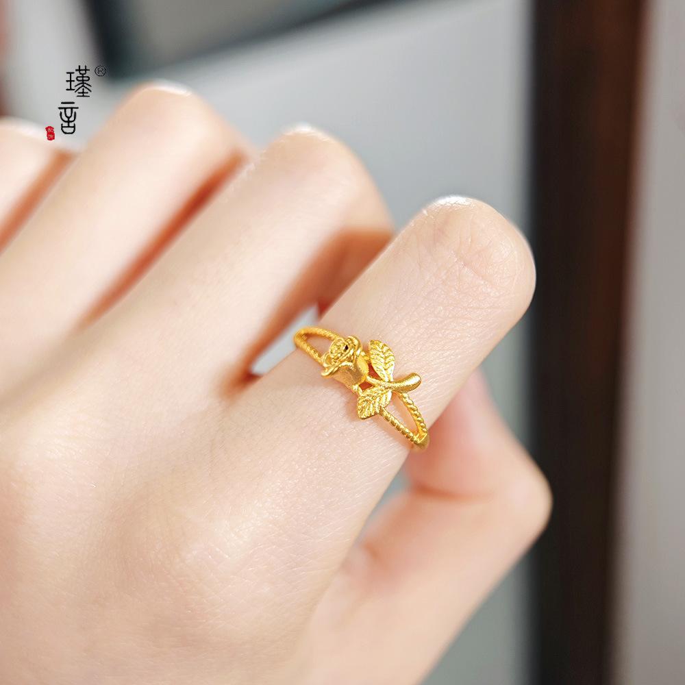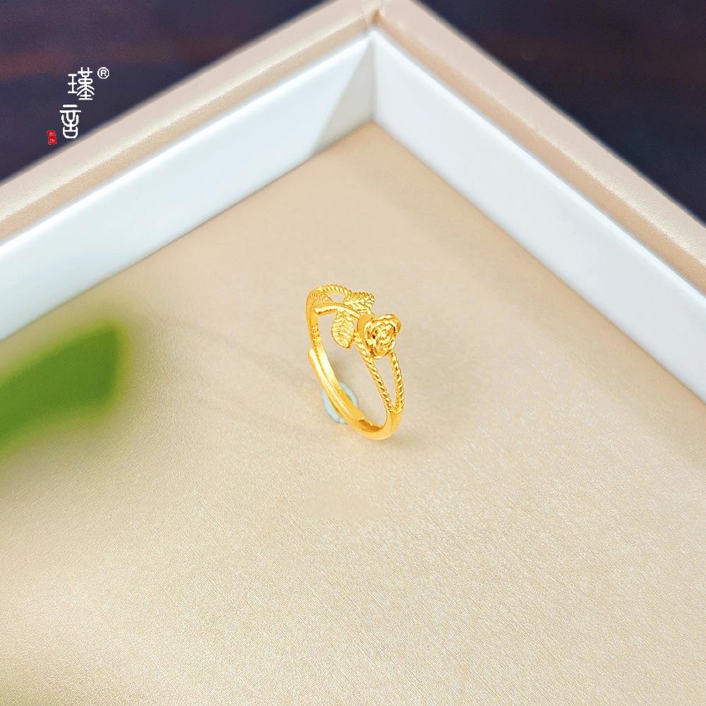 Joyería de oro Jin Yan con anillo rosa de noche de verano, anillo de método antiguo para mujer, diseño de nicho de rosa de alto sentido, apertura