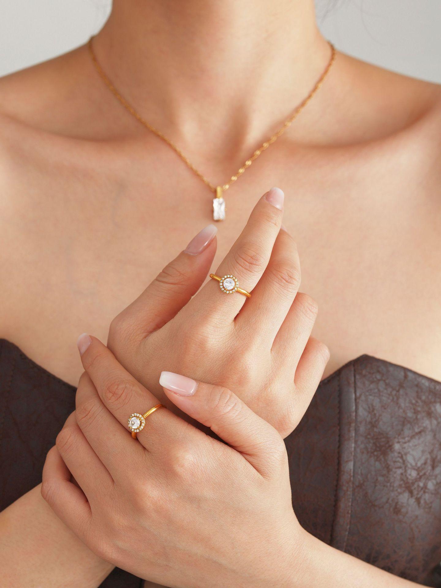 Anillo Xinyixin de Acero Inoxidable con Apertura Lateral, Circonita 5A, Diamante Flash, Anillo para Dedo Galvanizado PVD, Accesorios de Joyería de Lujo Ligero