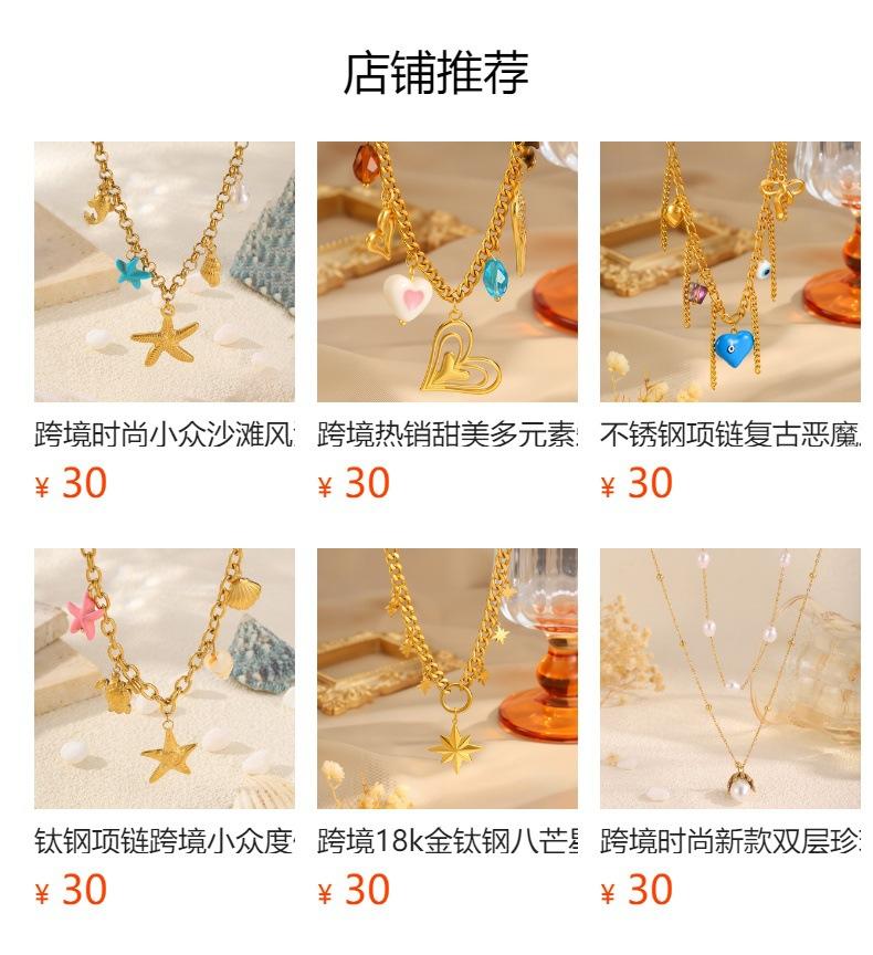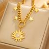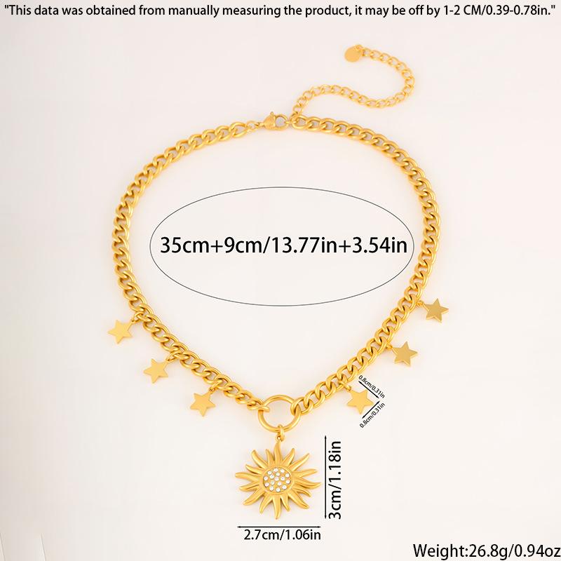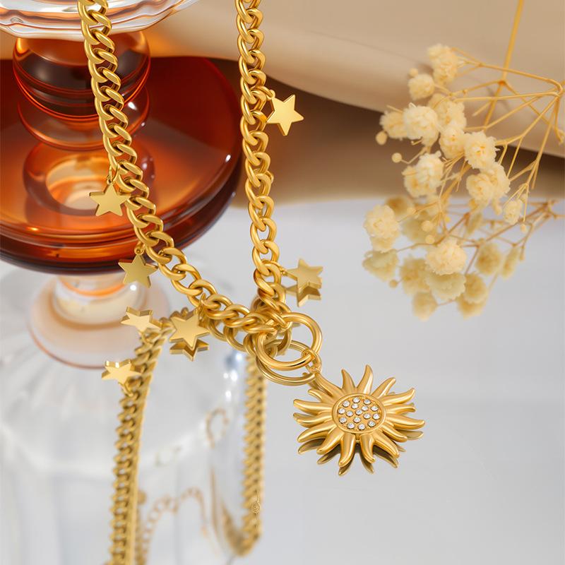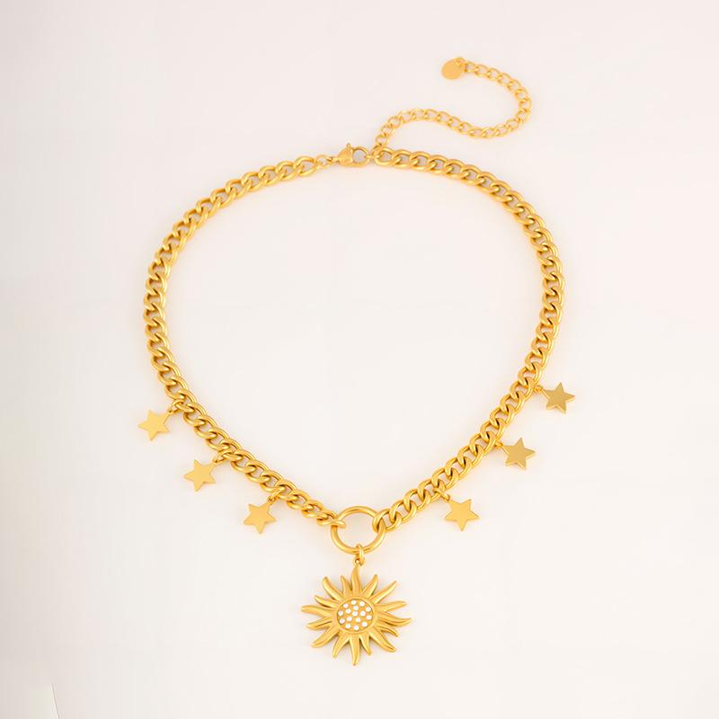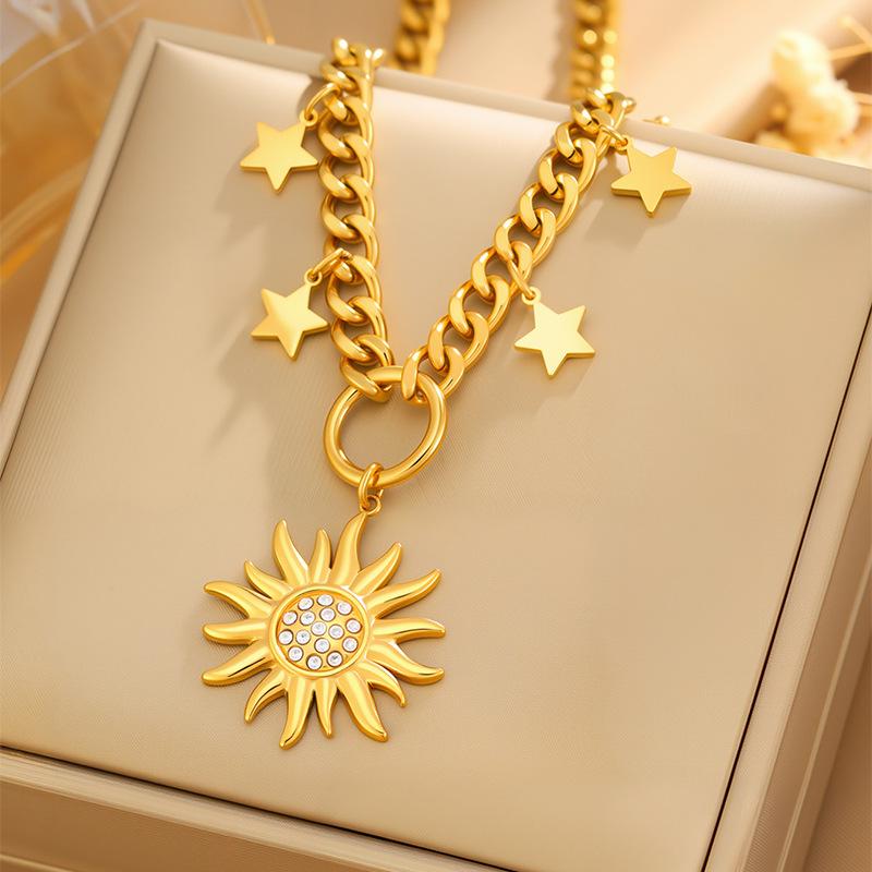 Collar de Acero Inoxidable Serie Sol Dorado con Incrustaciones de Diamantes Europeos y Americanos Transfronterizo para Mujer con Cadena Gruesa de Seis Estrellas Collar de Estrella