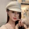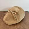 Gorra de pana roja con lazo de diseñador para mujer, boina de ala corta pequeña para otoño e invierno, 2024