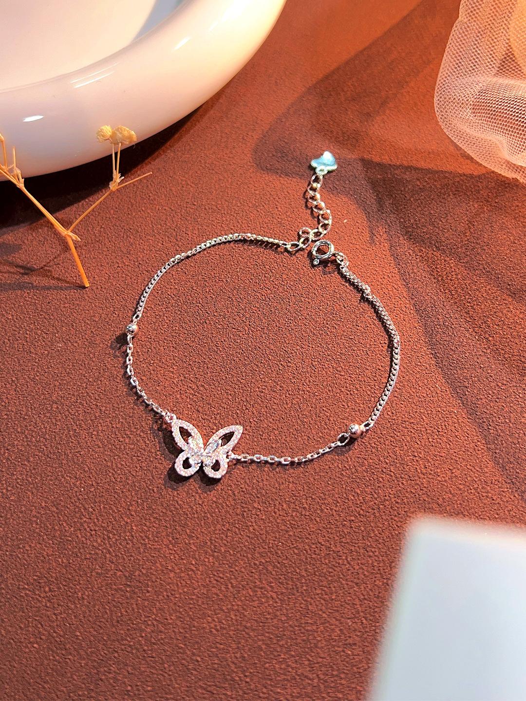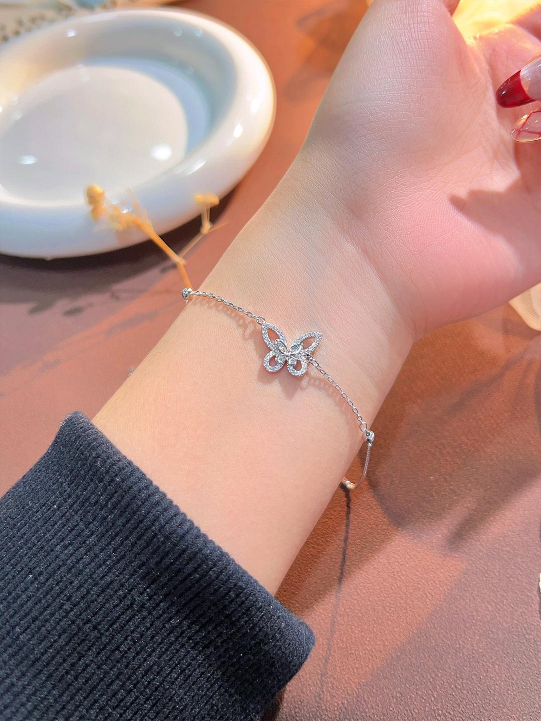 Pulsera de Mariposa Hueca de Plata S925 para Mujer Estilo Ins Nicho Lujo Ligero Combinable Incrustación Diseño de Gama Alta Sentido Pulsera Regalo