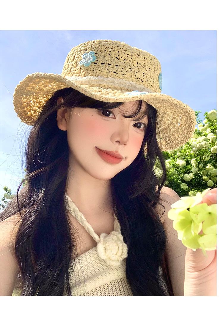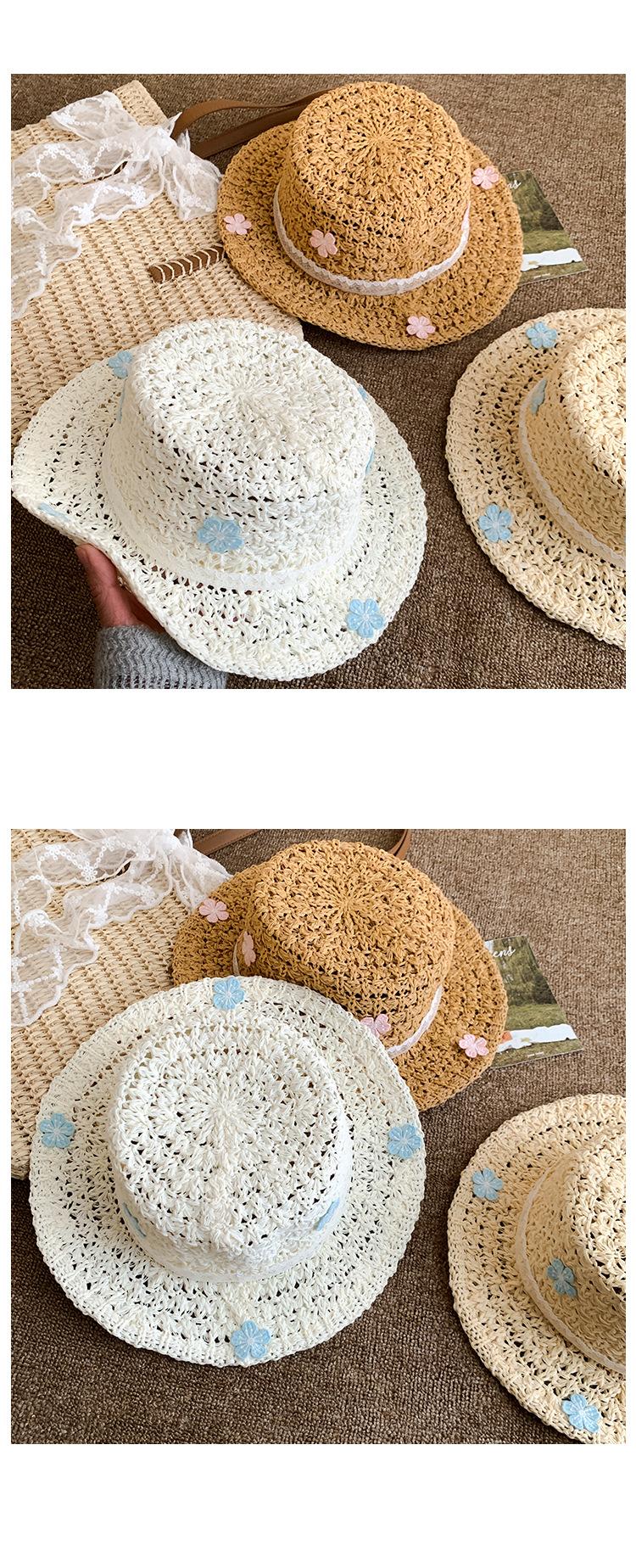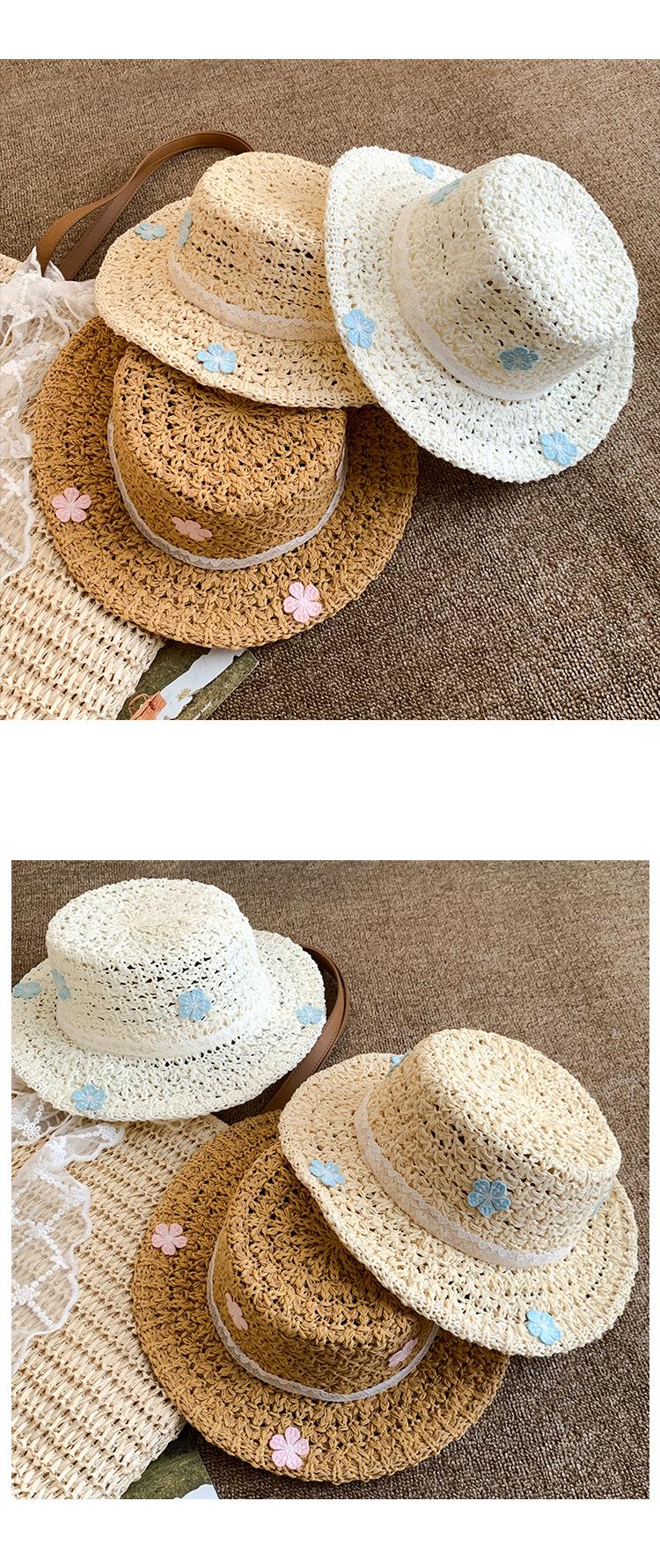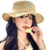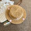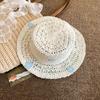 Sombrero de Paja de Copa Plana con Flor para Mujer Verano Vacaciones en la Playa Mar Sombrero para el Sol Hueco Sombrero Francés para el Sol