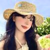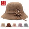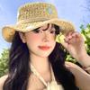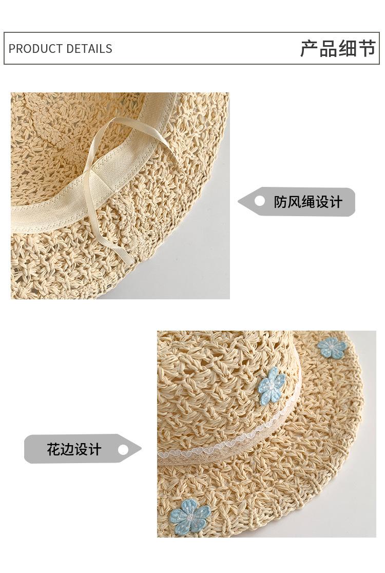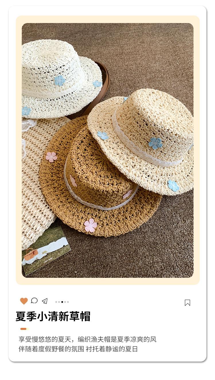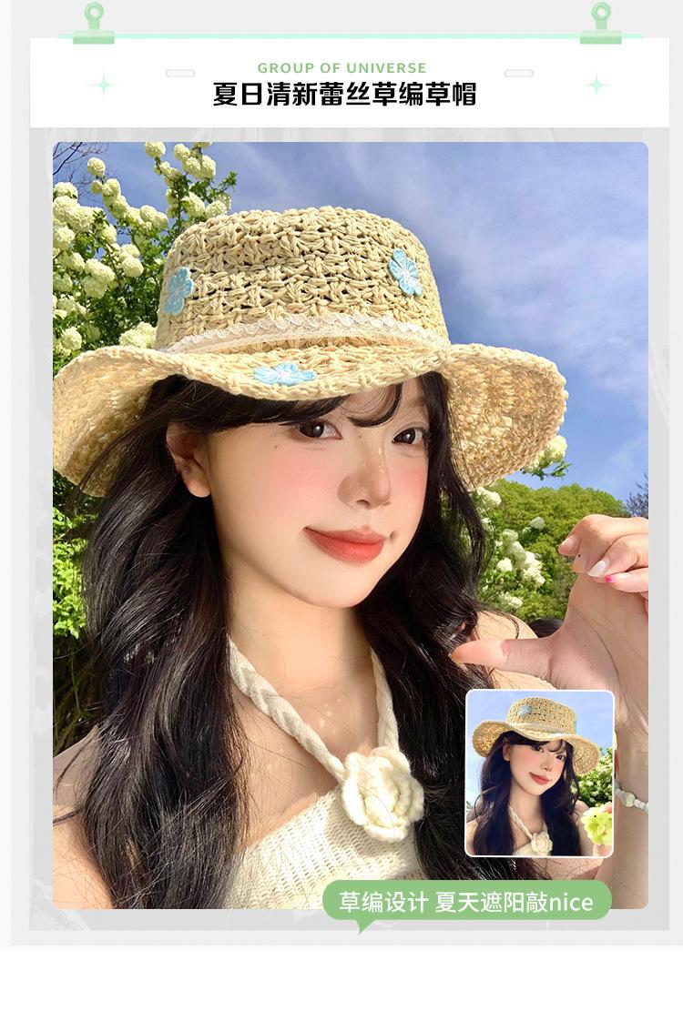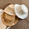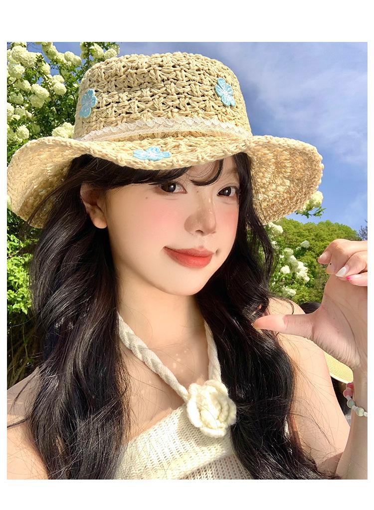 Sombrero de Paja de Copa Plana con Flor para Mujer Verano Vacaciones en la Playa Mar Sombrero para el Sol Hueco Sombrero Francés para el Sol