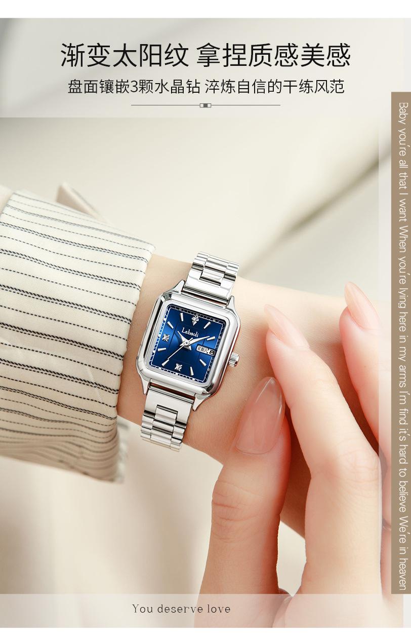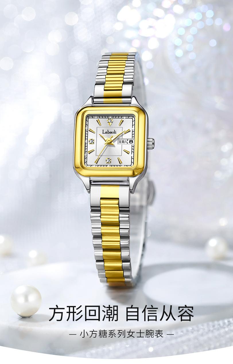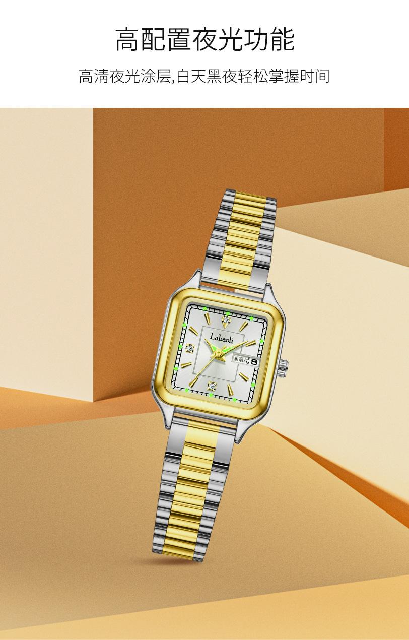 Nuevo reloj transfronterizo para mujer, calendario ligero, lujo, diamantes cuadrados, relojes de cuarzo resistentes al agua, reloj para mujer, venta al por mayor