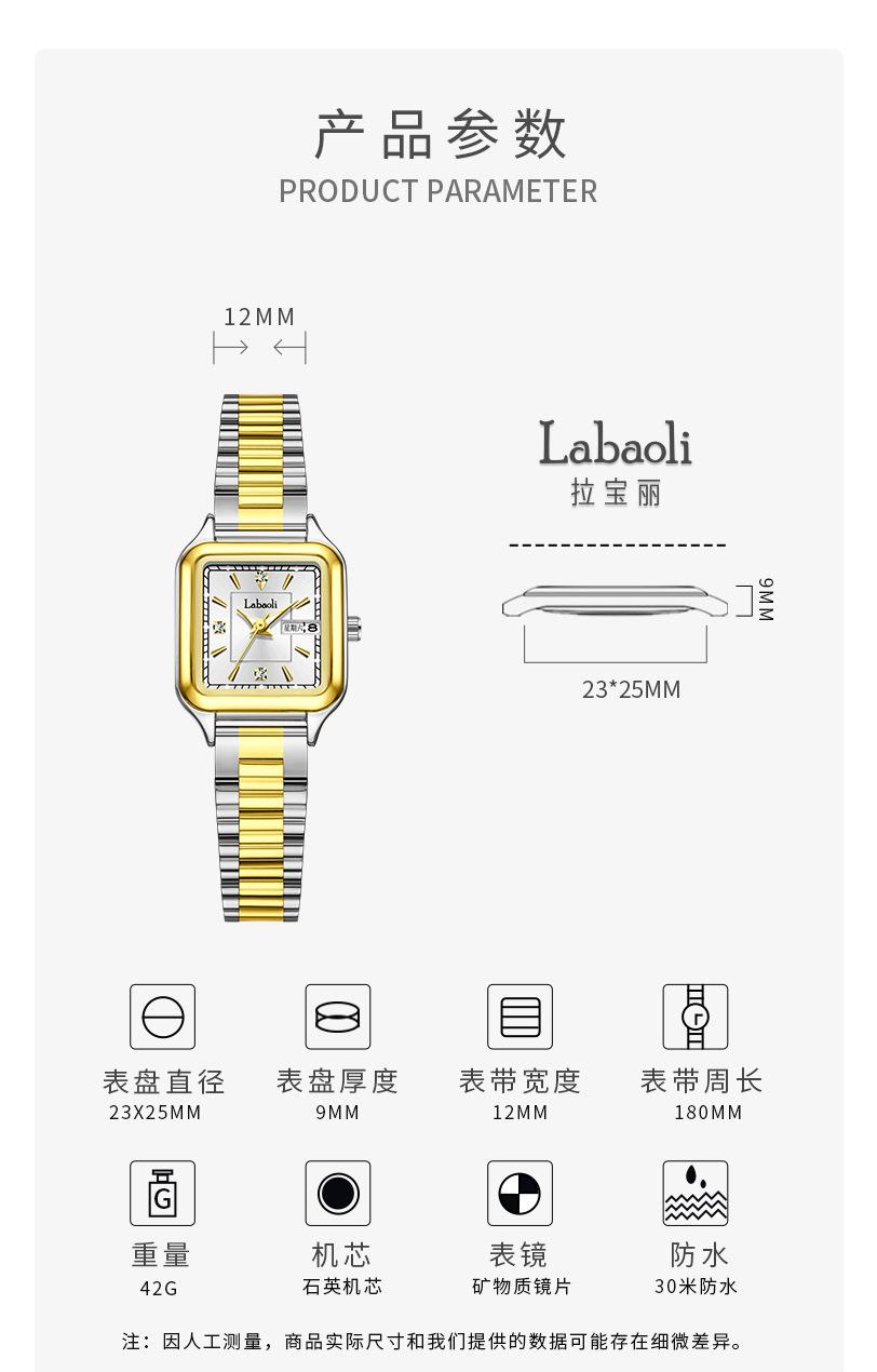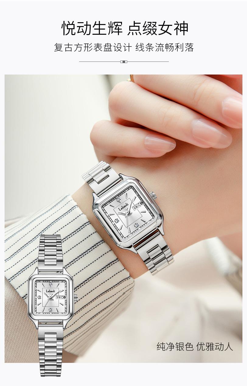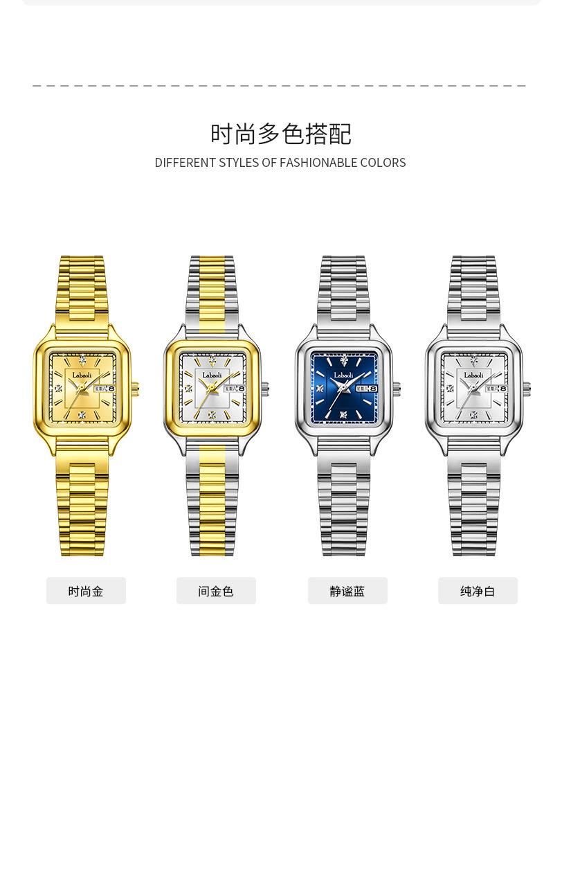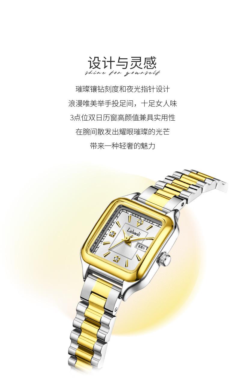 Nuevo reloj transfronterizo para mujer, calendario ligero, lujo, diamantes cuadrados, relojes de cuarzo resistentes al agua, reloj para mujer, venta al por mayor