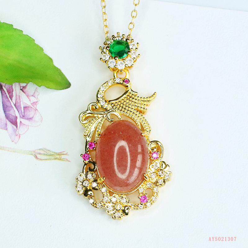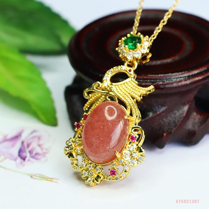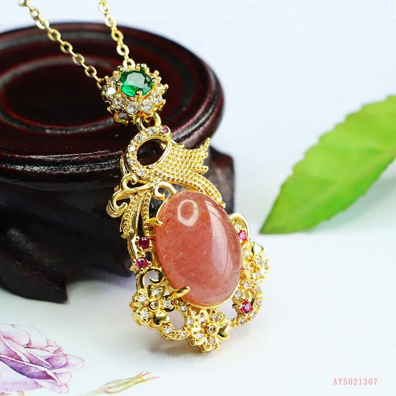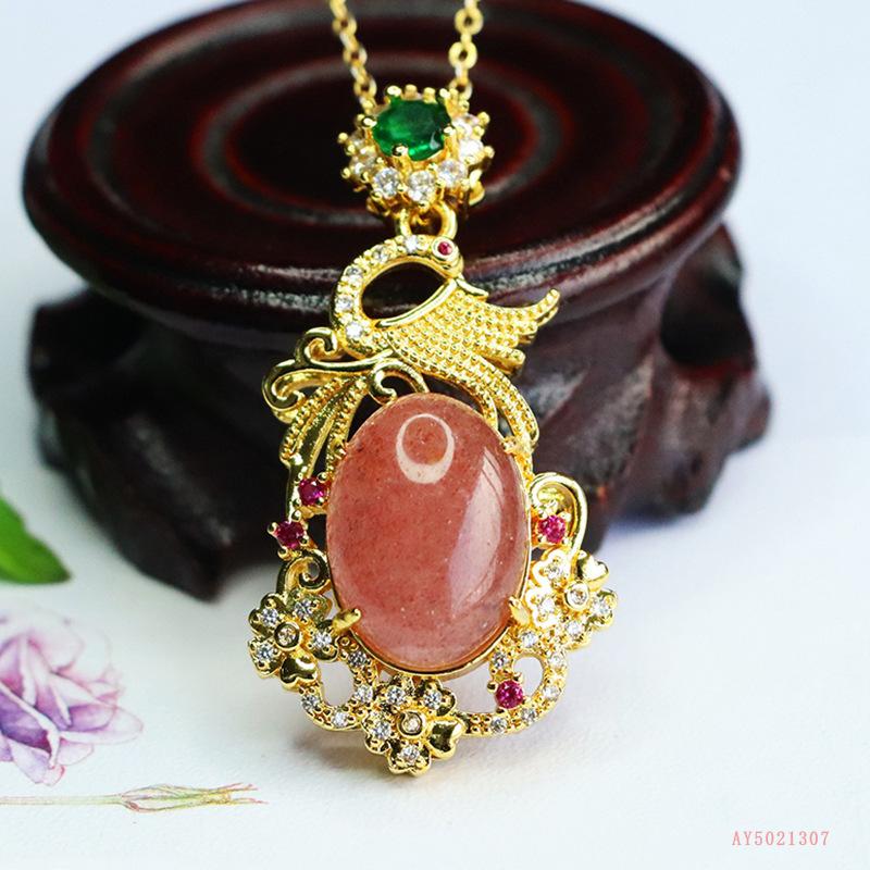 Colgante de Fénix de Cristal Natural de Fresa Aiyu Collar Tesoro Color Cristal Venta en Vivo Venta al por Mayor AY5021307