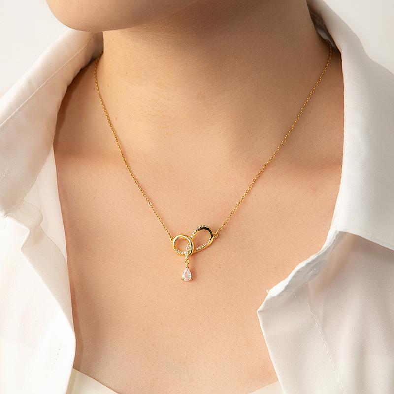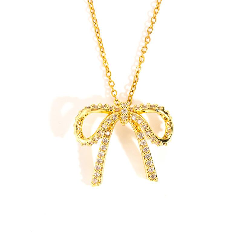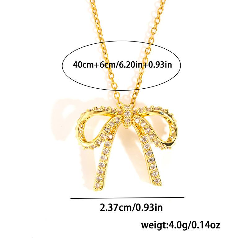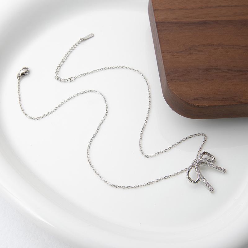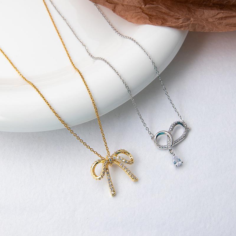 Irregular love zircon necklace-gold, Irregular love zircon necklace-steel, Ribbon bow necklace-gold, Ribbon bo...