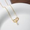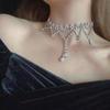 Collar elegante y ligero de cobre con cadena de clavícula de circonita con borlas y lazo de amor de moda coreana