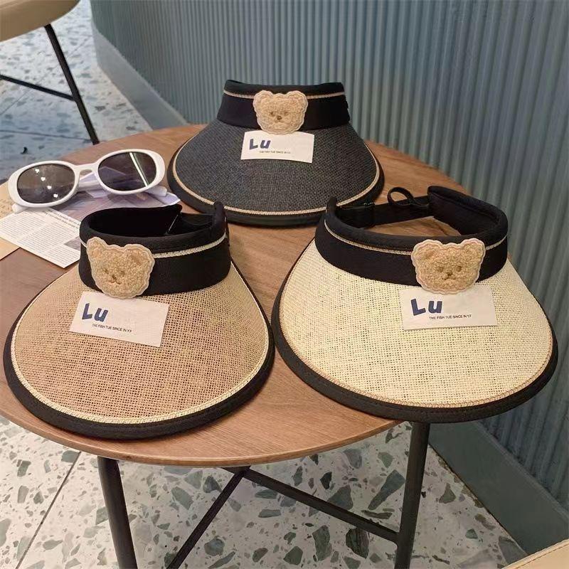 Sombrero de Sol para Niños Verano Sombrero de Paja de Ala Ancha Niña Oso Sombrero de Sol para Bebé Parte Superior Vacía Sombrero de Sol para Niño Familia