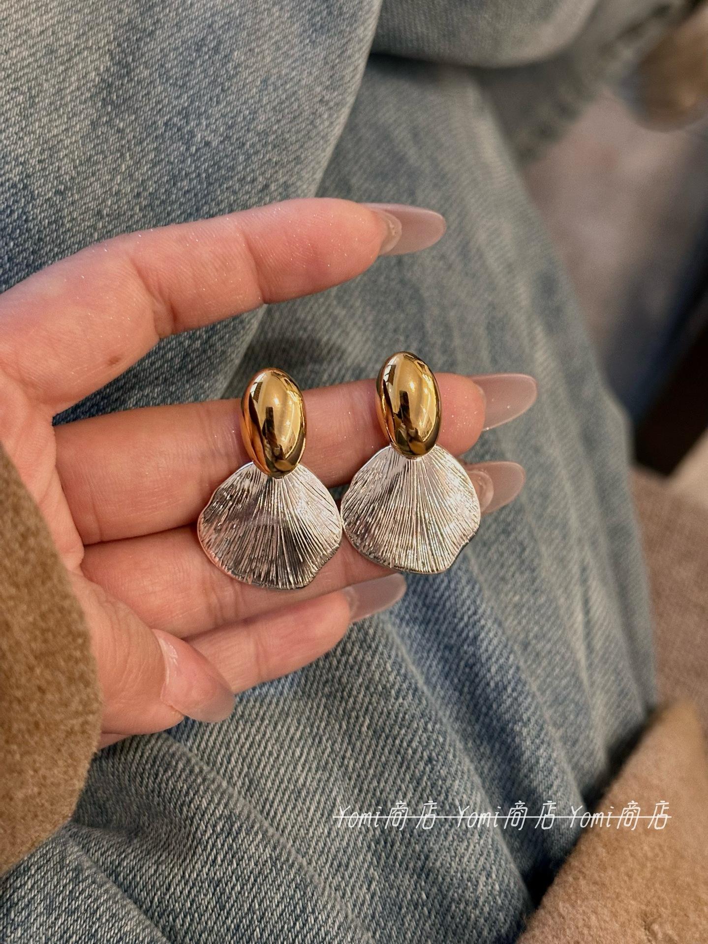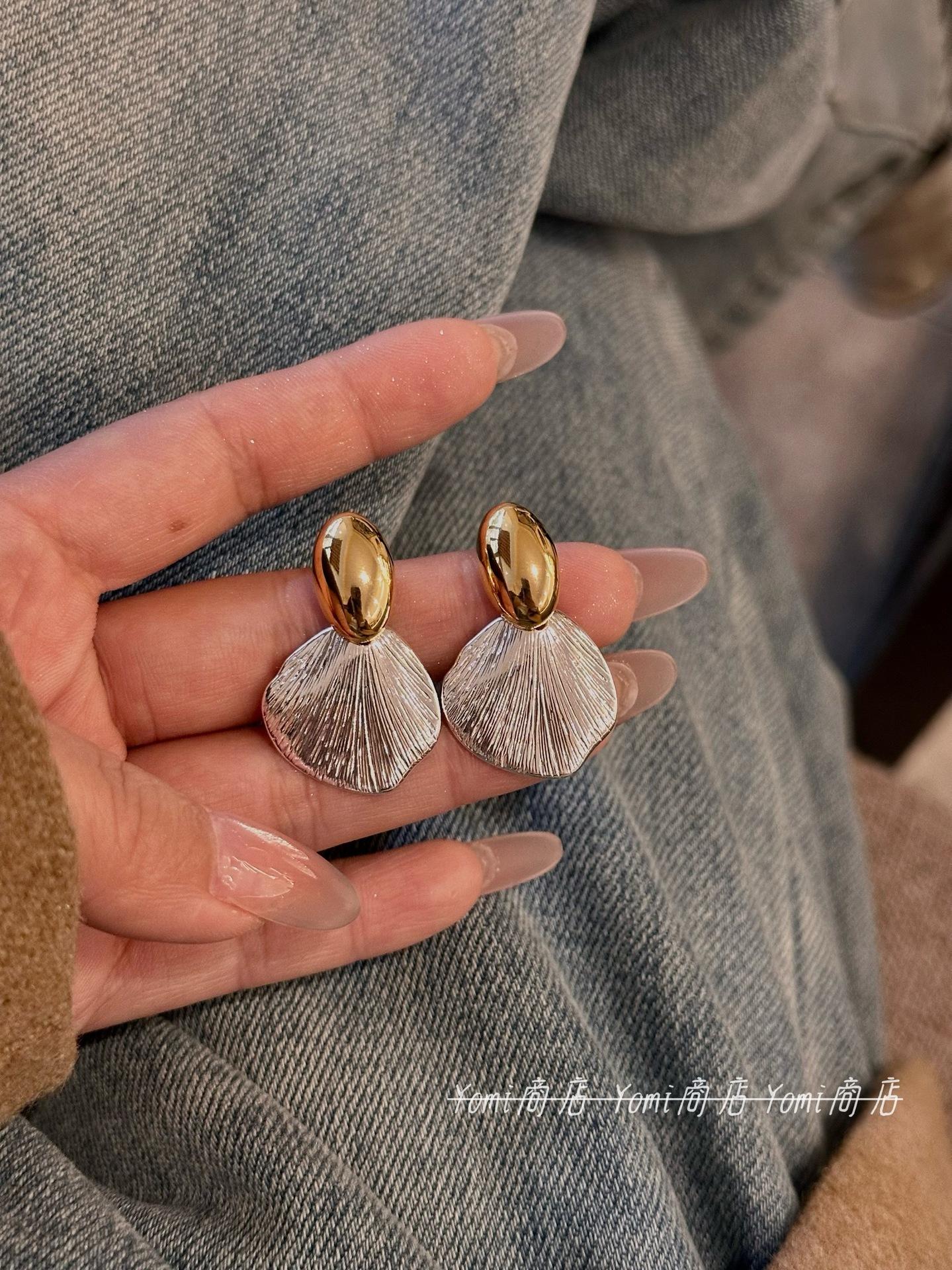 2025 nuevos aretes de textura de viento frío de alta gama para mujer, aretes de diseño de metal de nicho, aretes de lujo ligero al por mayor