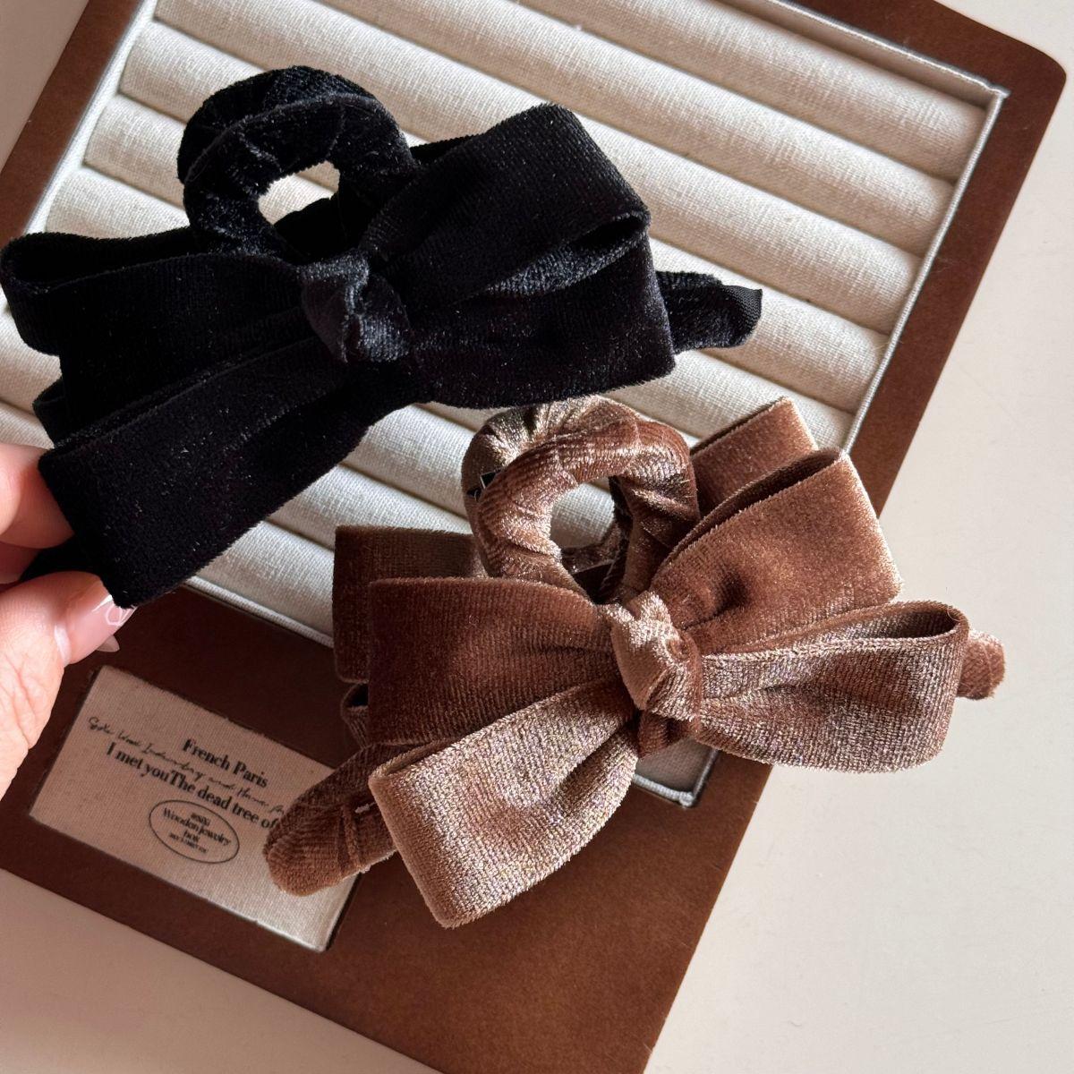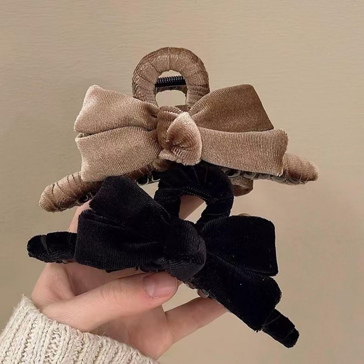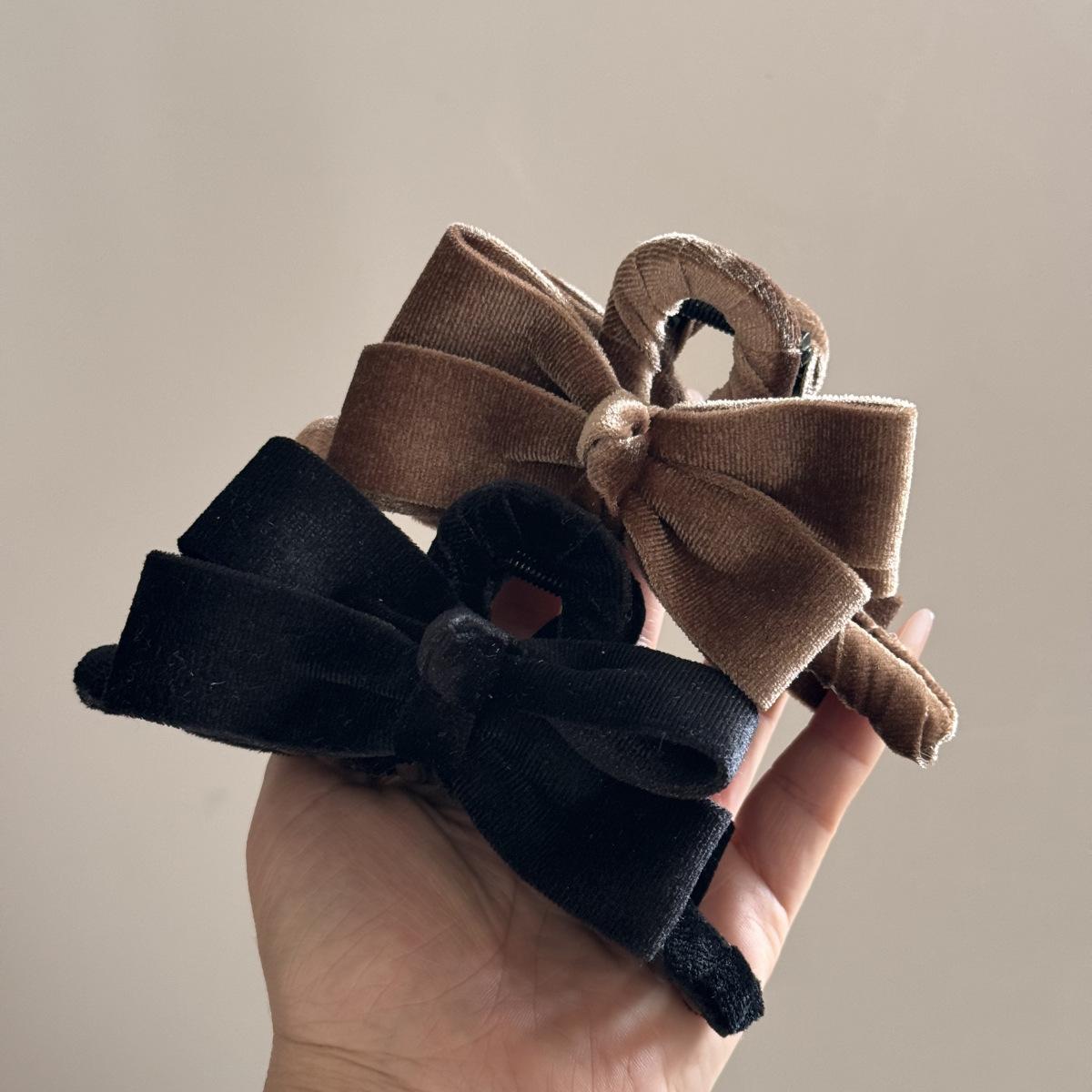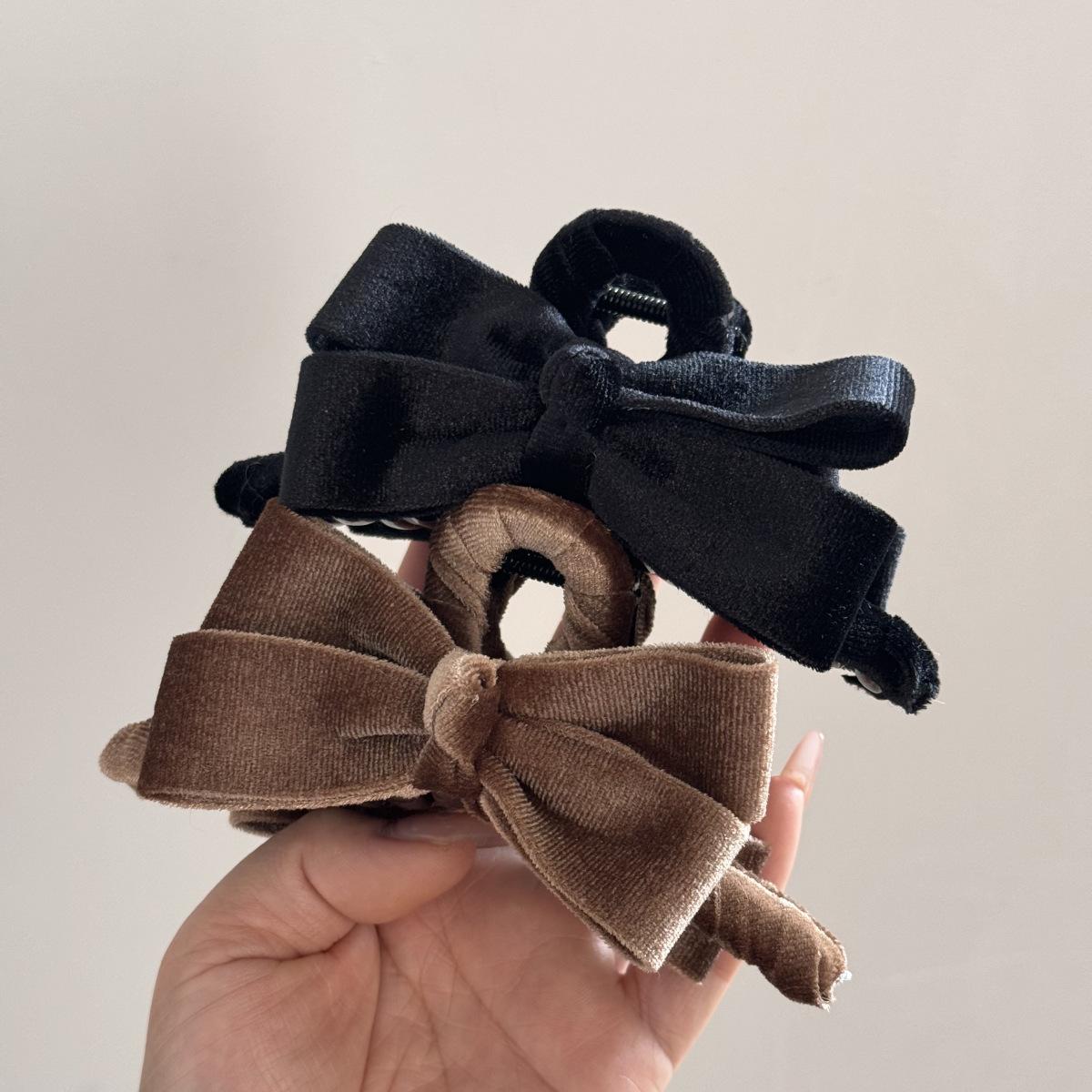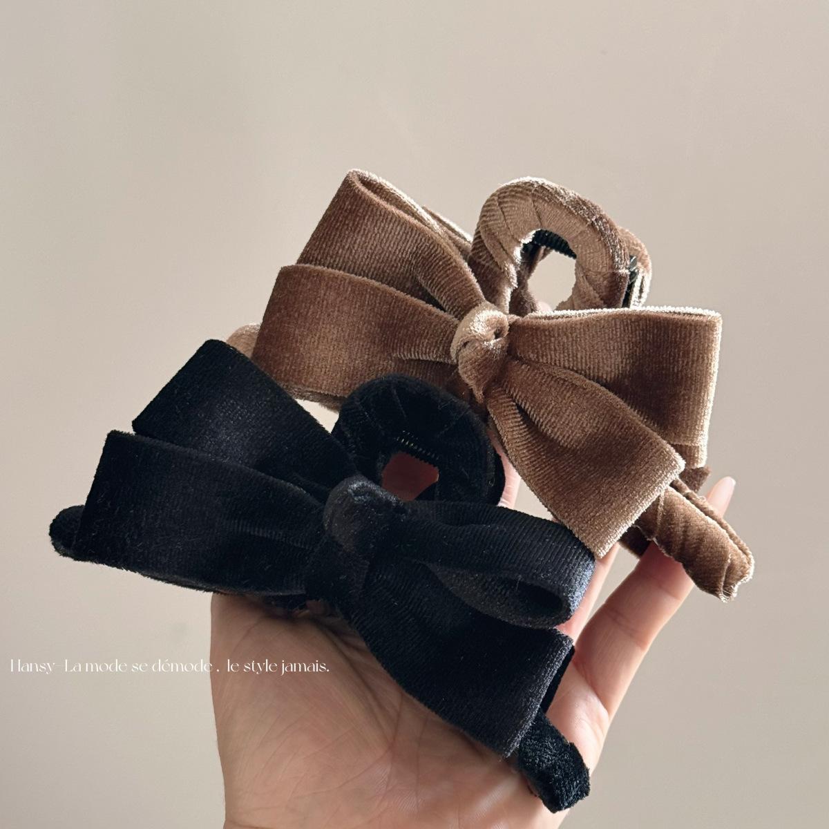 Velvet bow catch-black, Velvet bow hair clip - coffee