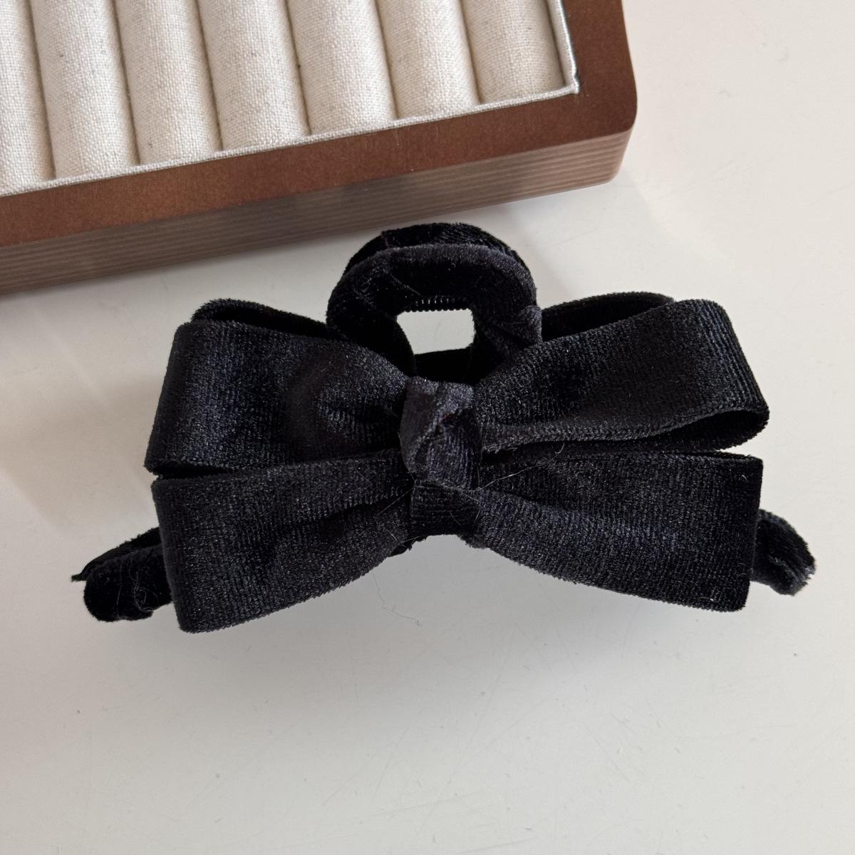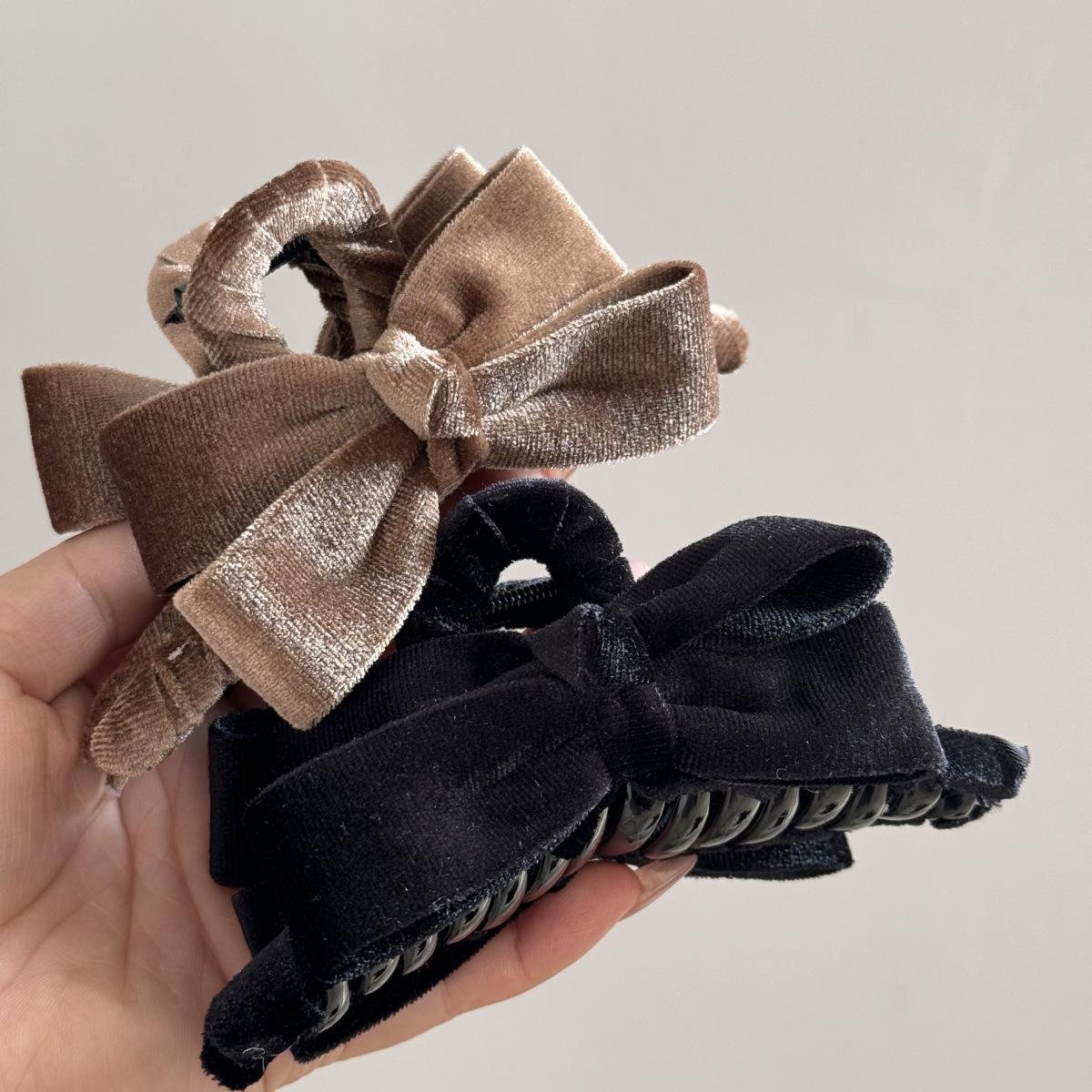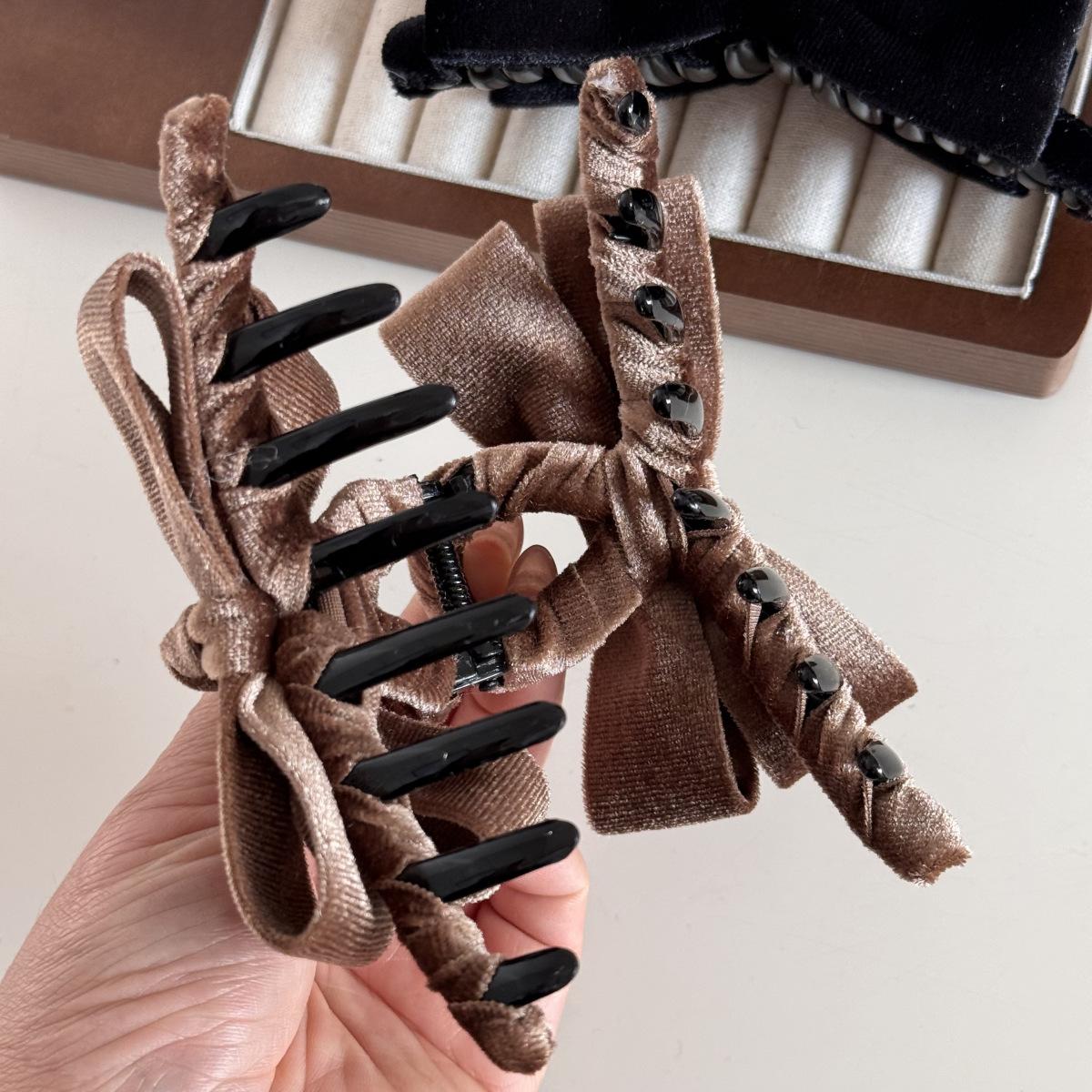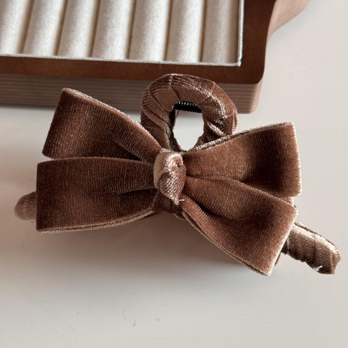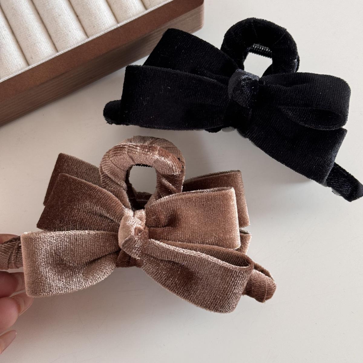 Velvet bow catch-black, Velvet bow hair clip - coffee