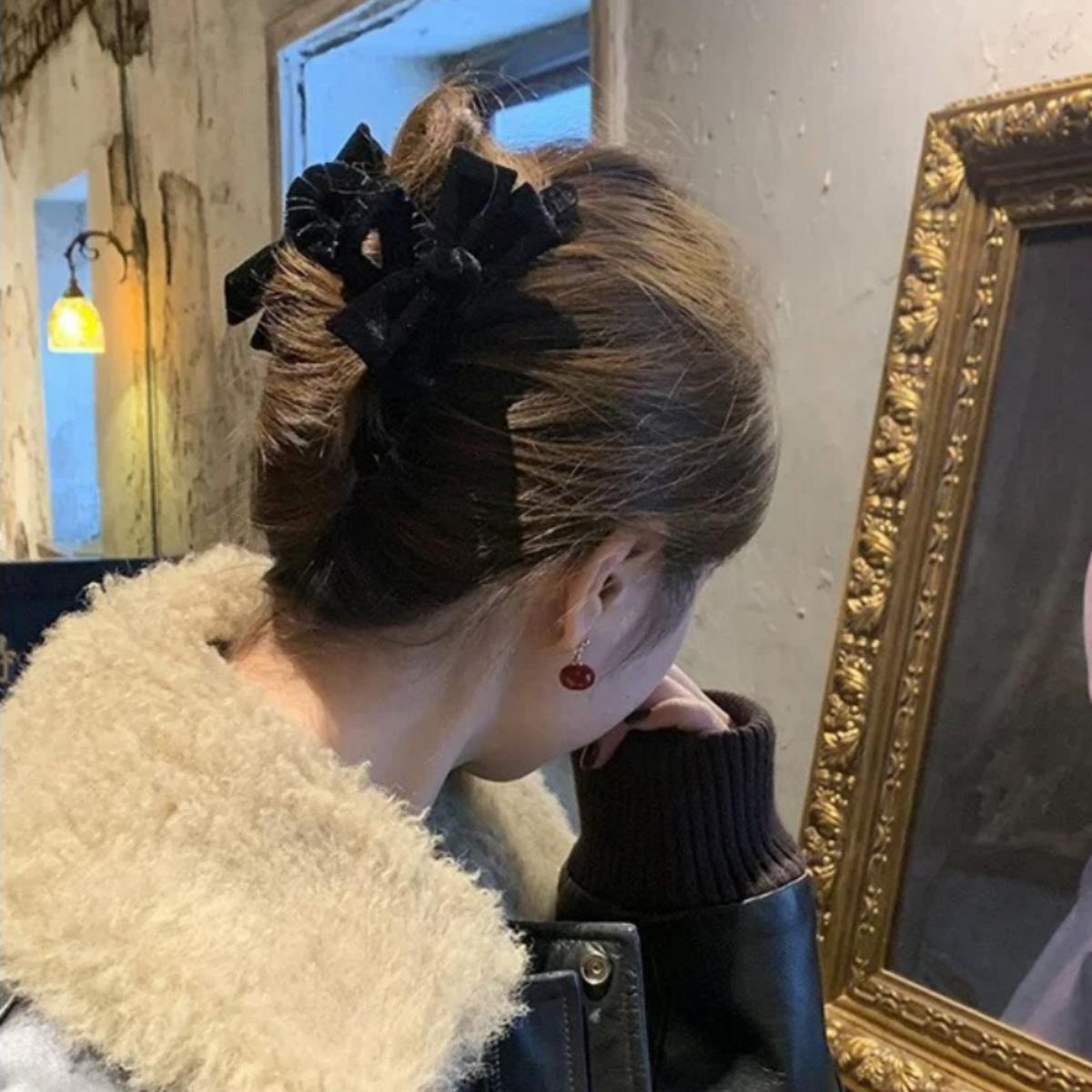 Elegante horquilla de terciopelo con lazo de estilo francés para mujer, accesorio para el cabello de alta gama para otoño e invierno.