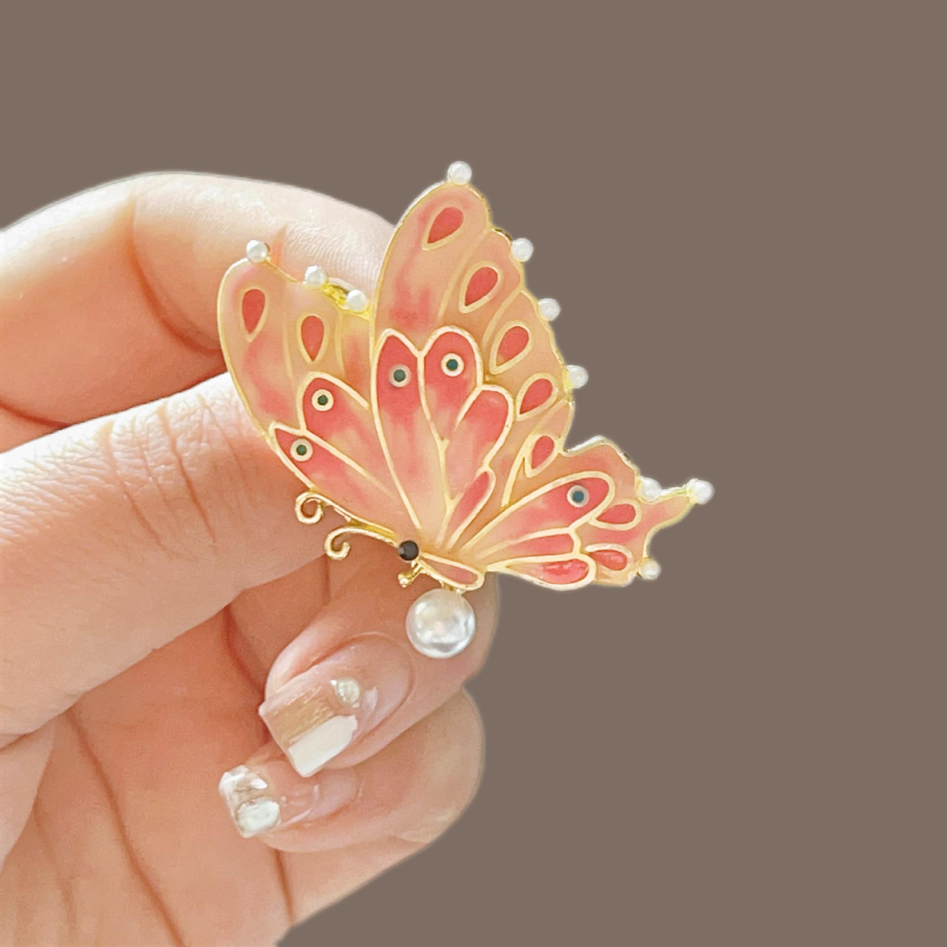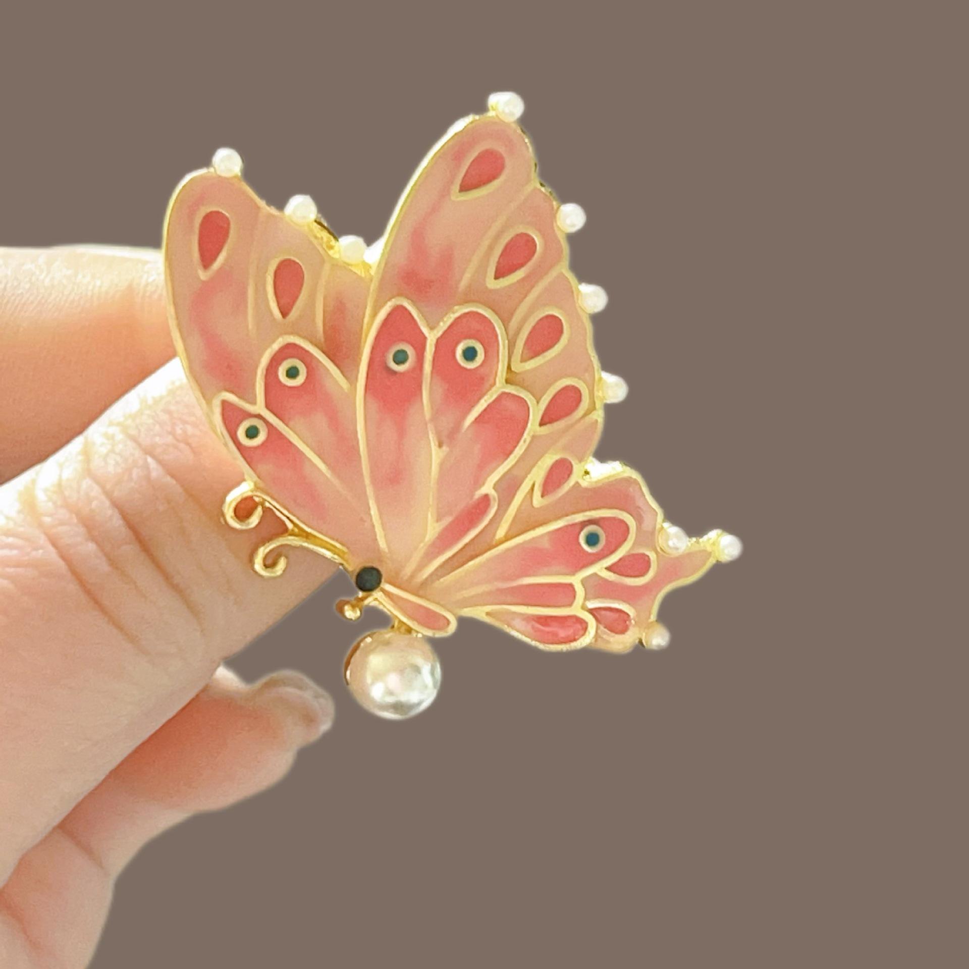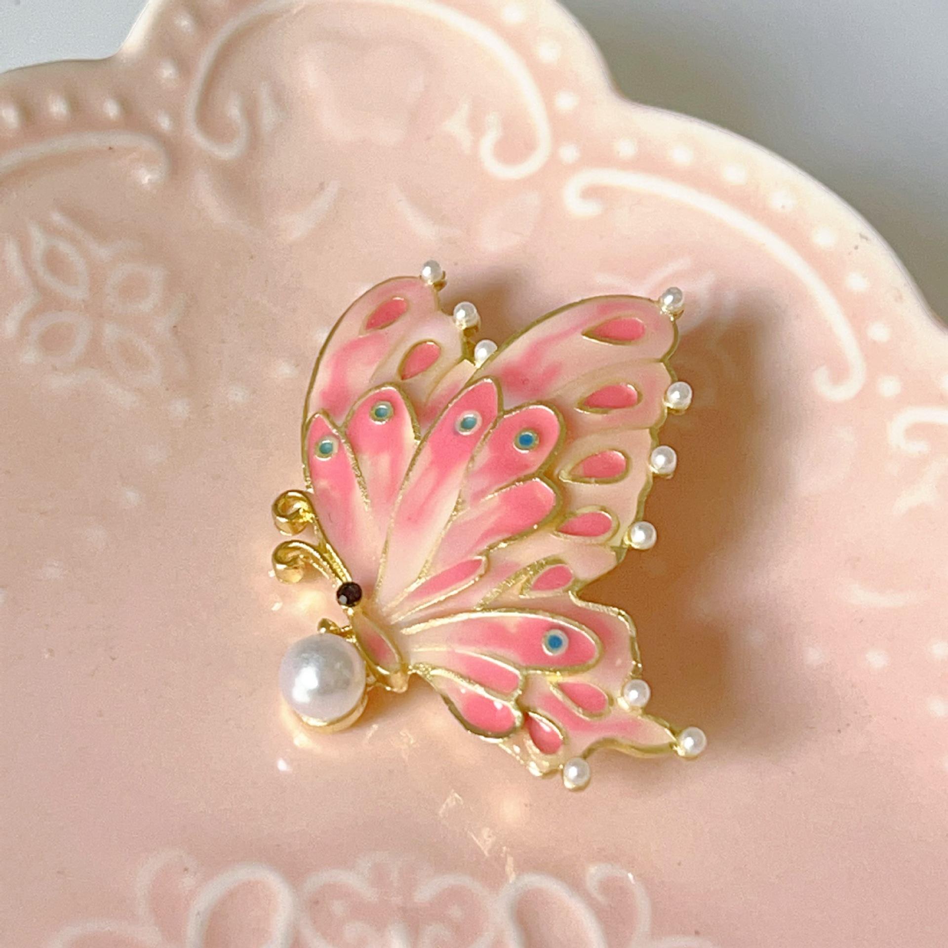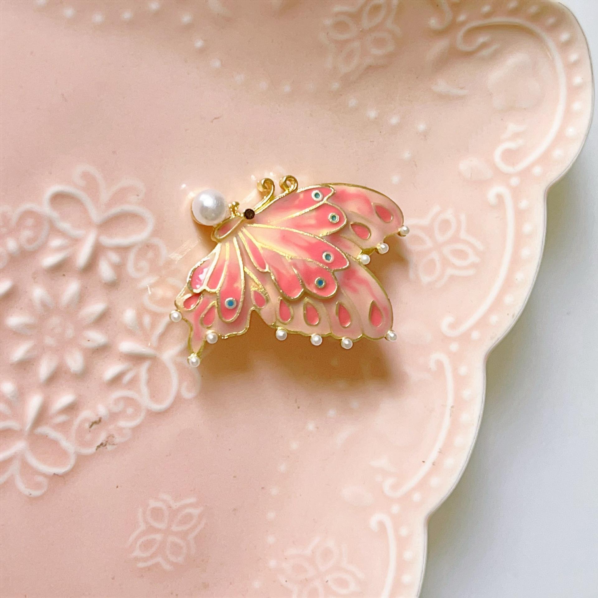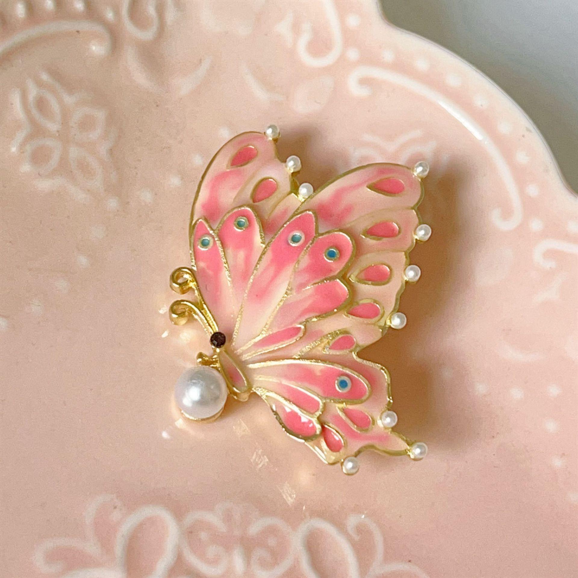 Broche de perlas de mariposa rosa, ramillete, de alta gama, ligero, de lujo, de alta gama, para mujer, joyería de cintura ajustada, joyería de pin