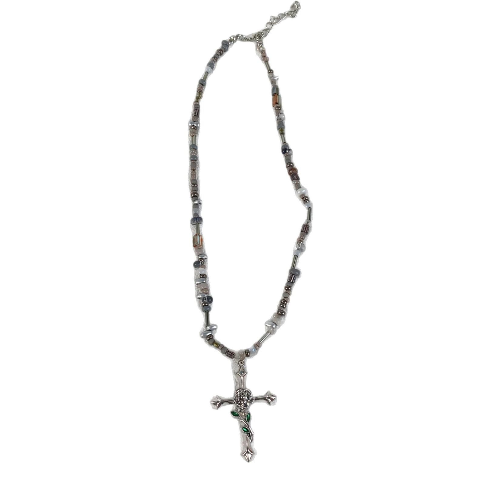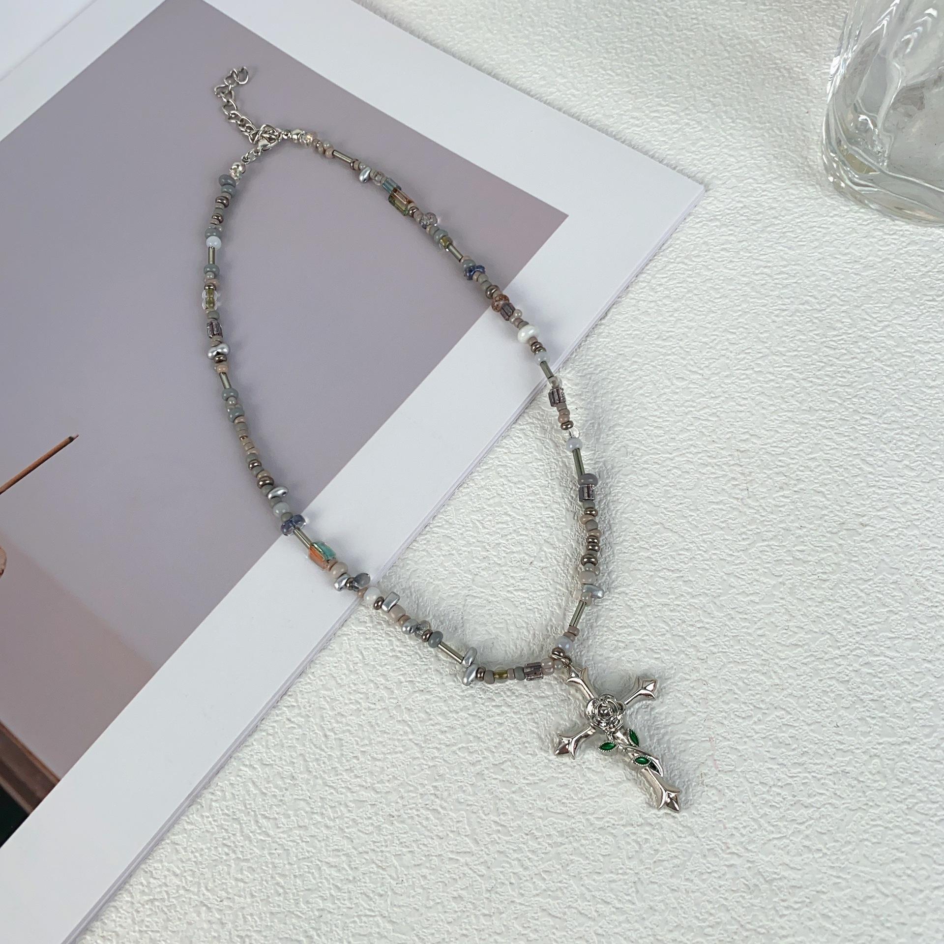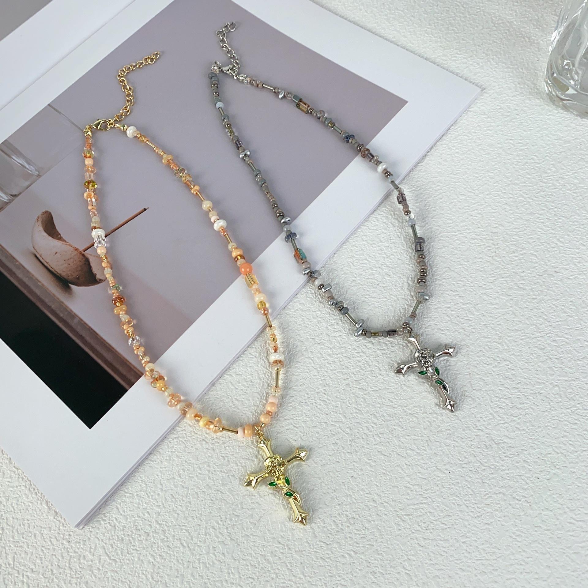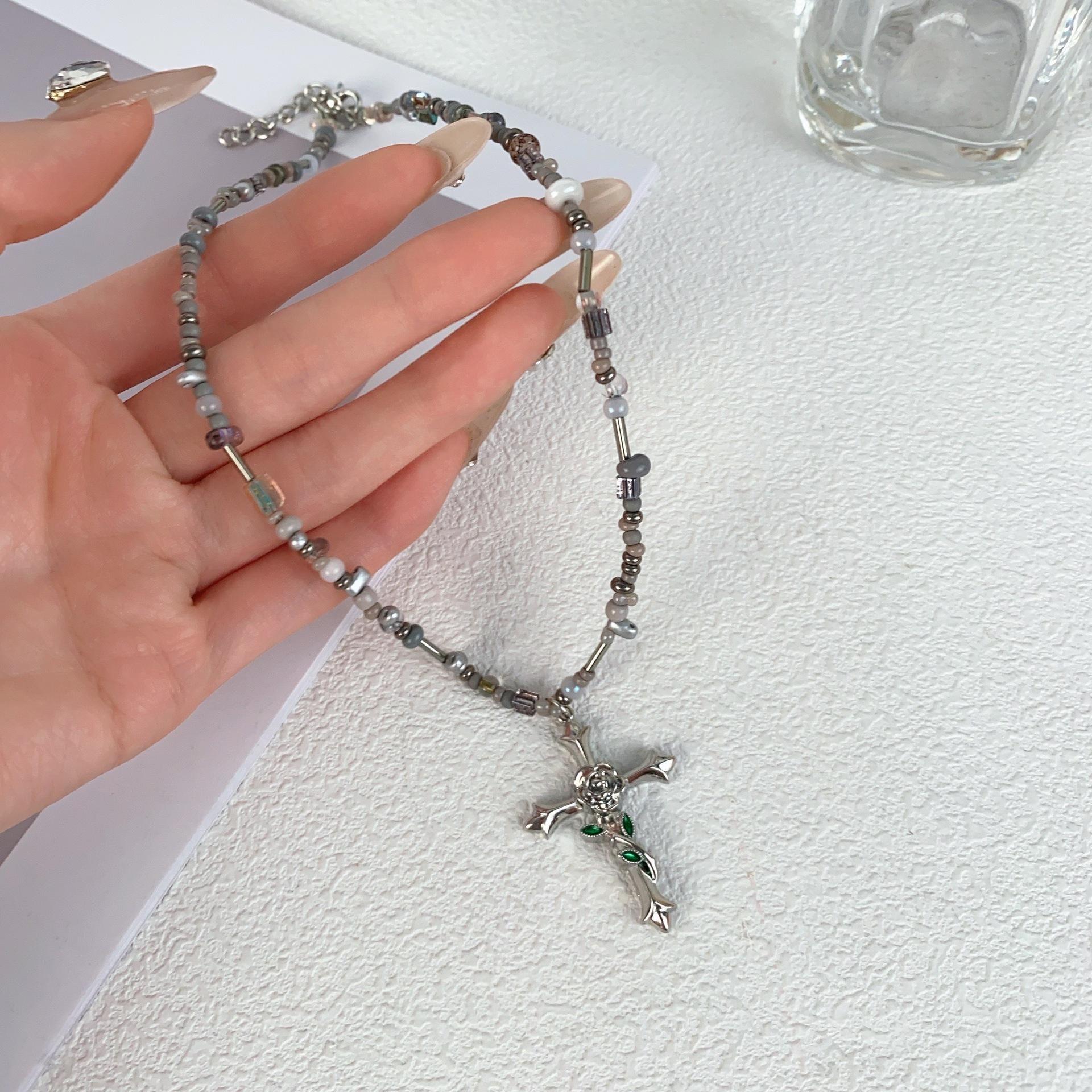 Collar con colgante de cruz de rosa de mosaico Cadena de clavícula de moda europea y americana transfronteriza Collar de diseño de nicho de alta gama